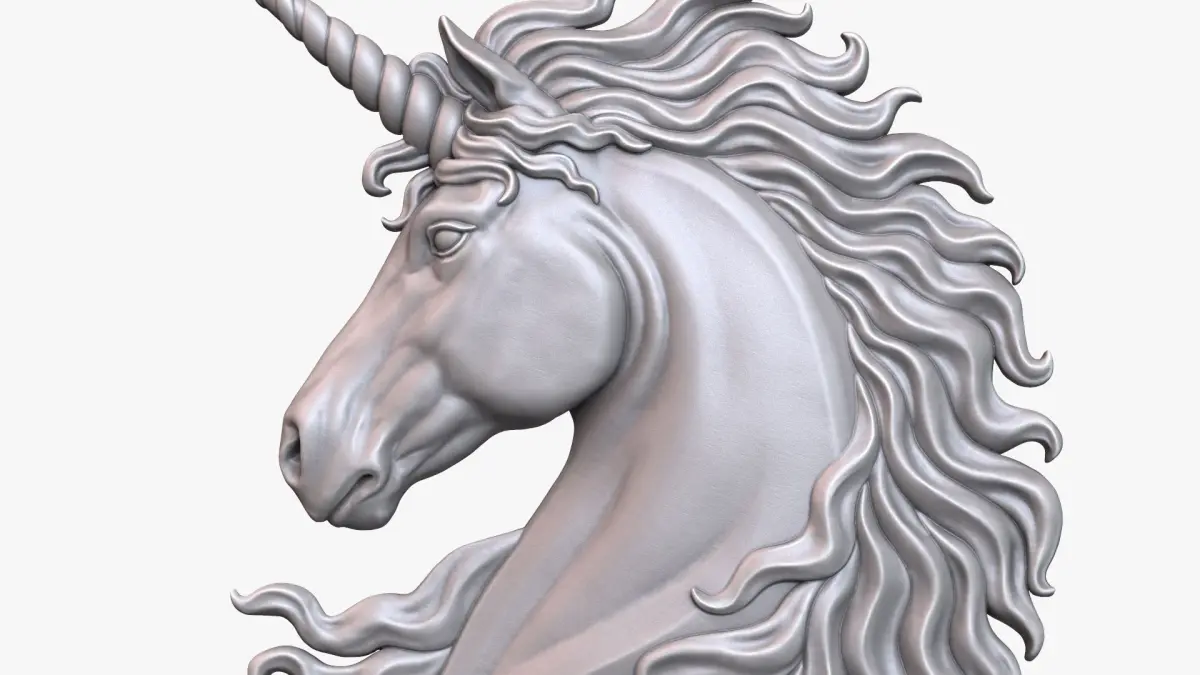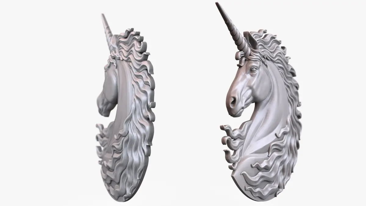 A digital sculpture of an Unicorn bust for 3D printing and CNC.