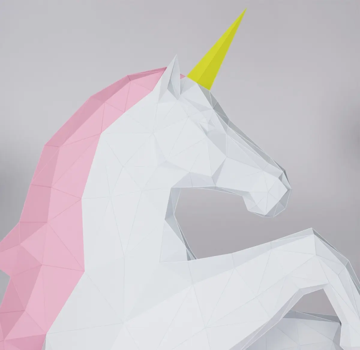 3d model for sculpting, 3D printing, creating design sculptures out of cardboard. and much more Low poly model of a UNICORN/HORSE. Suitable for prototyping and creating sculptures out of cardboard.