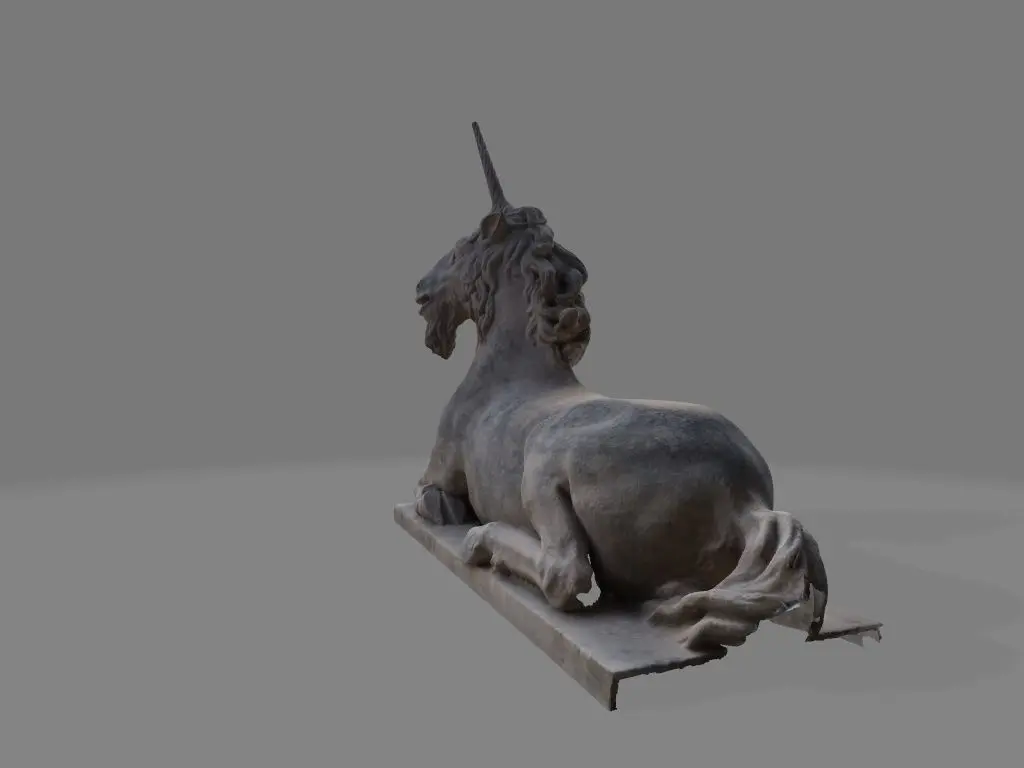 unicorn statue in mirabell garden salzburgphotoscaned, reallife scaleremeshed to uniform trianglesUV map with no overlap and minimal stretchsome geometry missing on the tail and behind the back left leg