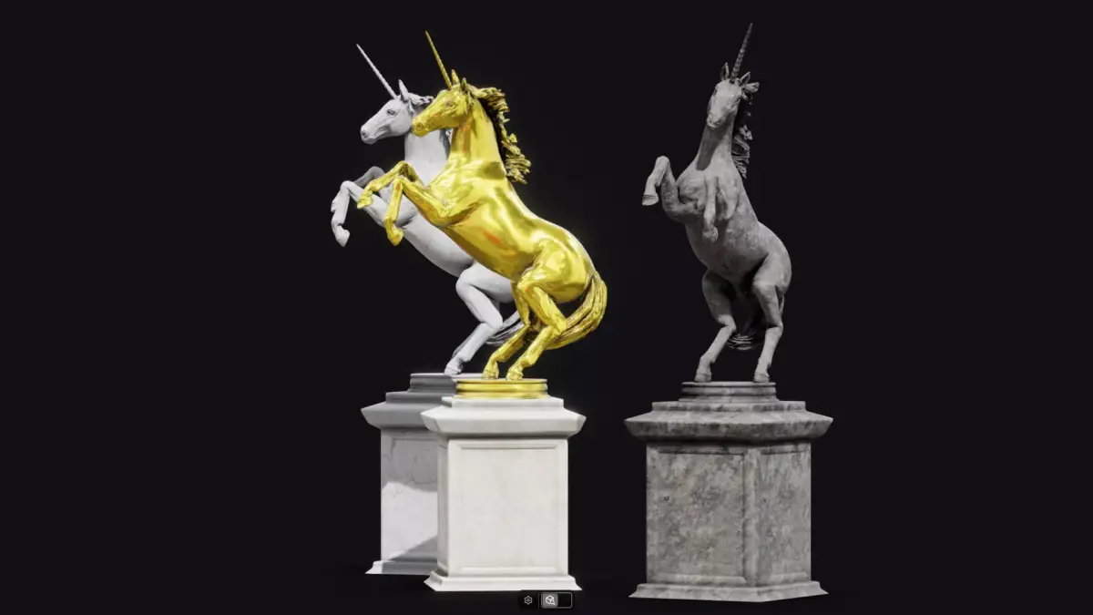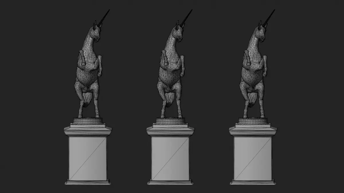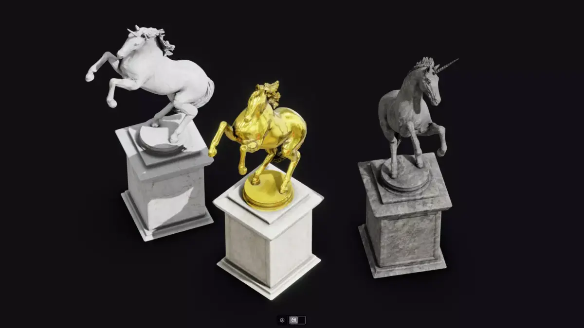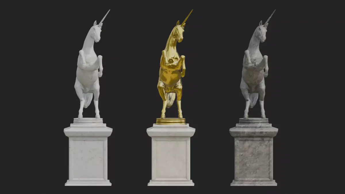 Base and statue have separate materials. Each in 3 variants. Gold, marble and stone.