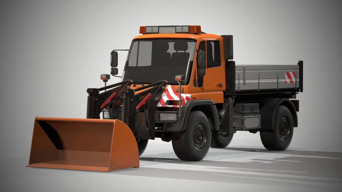 Realistic 3d model of Unimog U500 Front Loader Truck