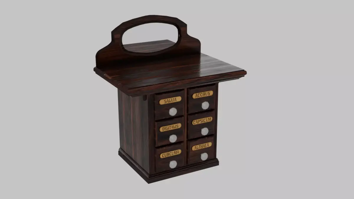 Bring vintage apothecary charm into your 3D interiors with this Unique Apothecary Table Nightstand, a richly detailed piece that blends historic character with practical versatility. Crafted in dark stained wood, this model captures the look of an old-world herbalist’s cabinet while fitting seamlessly into eclectic, rustic, or traditional bedroom and living room scenes.