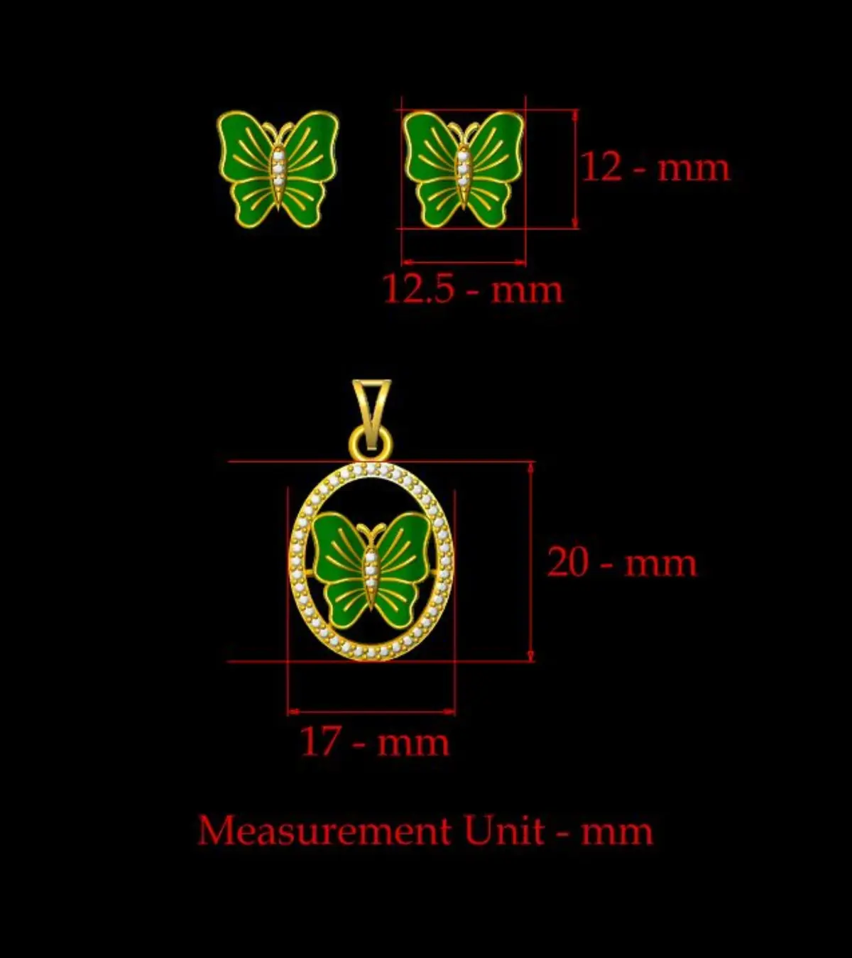 This is a jewelry Butterfly Pendant 3D print file. And this file is ready for jewelry CAM and all type of 3Dprinting. We can use this file as a jewelry pendant, earring, ring center piece, necklace center piece and other purpose.Butterfly pendant jewelry gold 3d print model _ File format: STL , OBJ , 3DM Pendant Magerit butterfly All sizes of stones and products are displayed on the images. The file cointains OBJ, STL and 3Ds models.For any additional information or request like editing or if you have trouble downloading contact me. I'll be glad to help as soon as i can. The model is made in full compliance with the technical requirements for production.