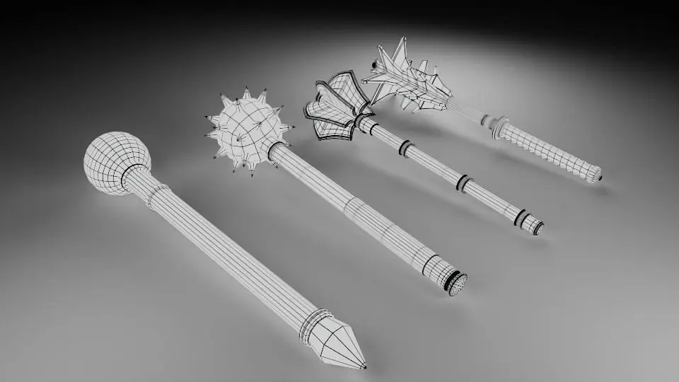 A pack of 4 unique medieval maces that are low poly, UV mapped, textured, and game ready.