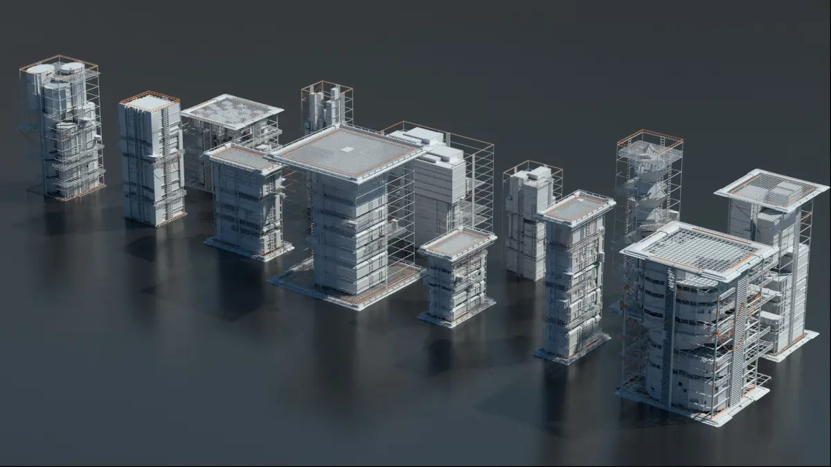 Unique Modular Sci-Fi Cyberpunk Futuristic City Buildings Kitbash