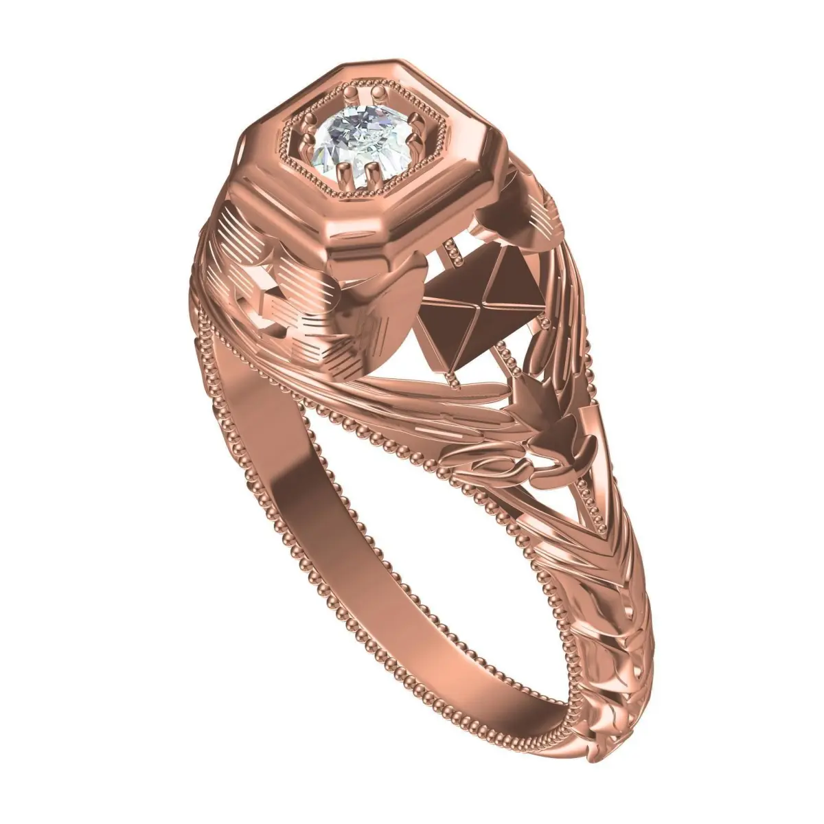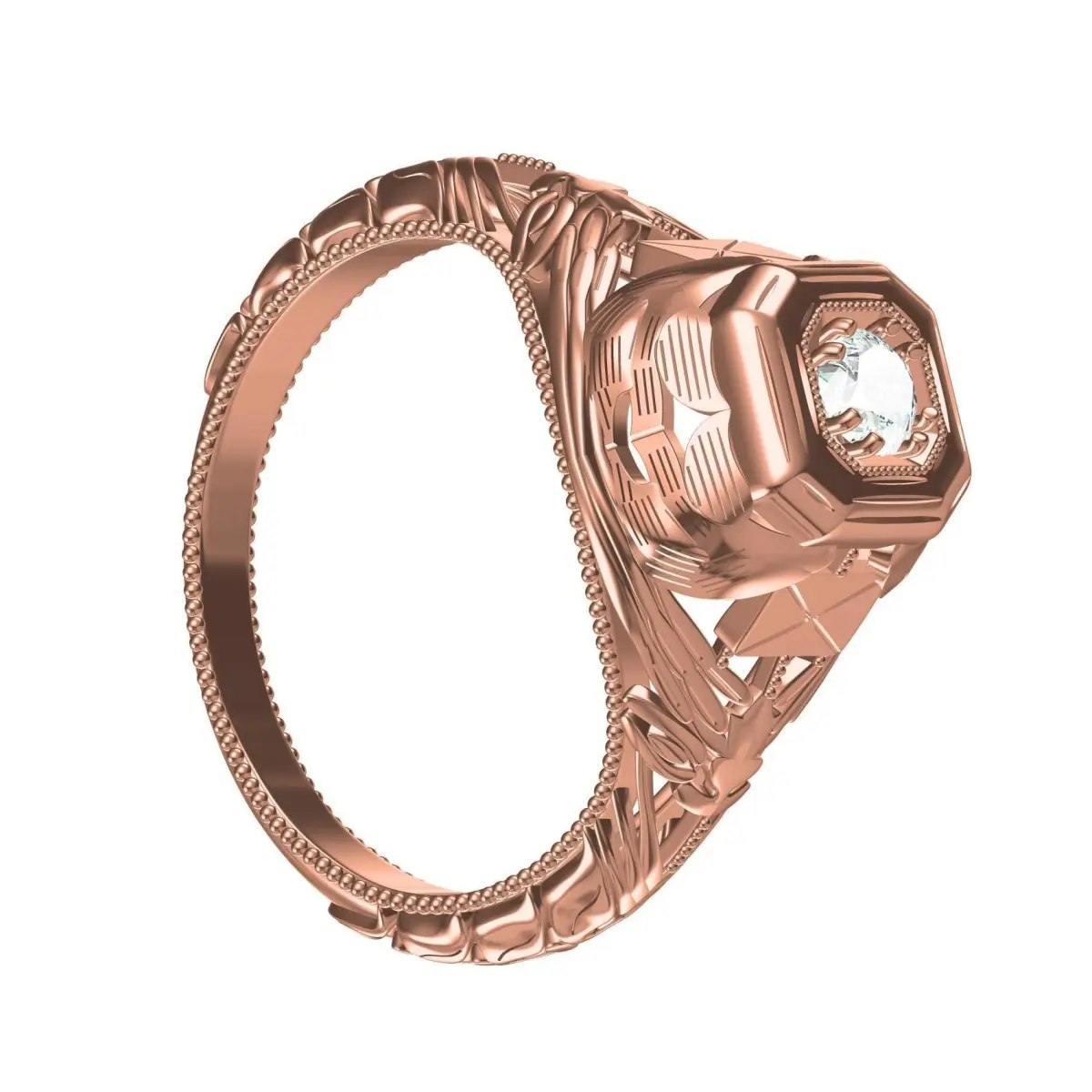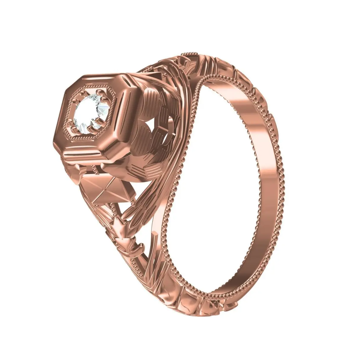 Unique Single Stone engraving Art Deco Ring