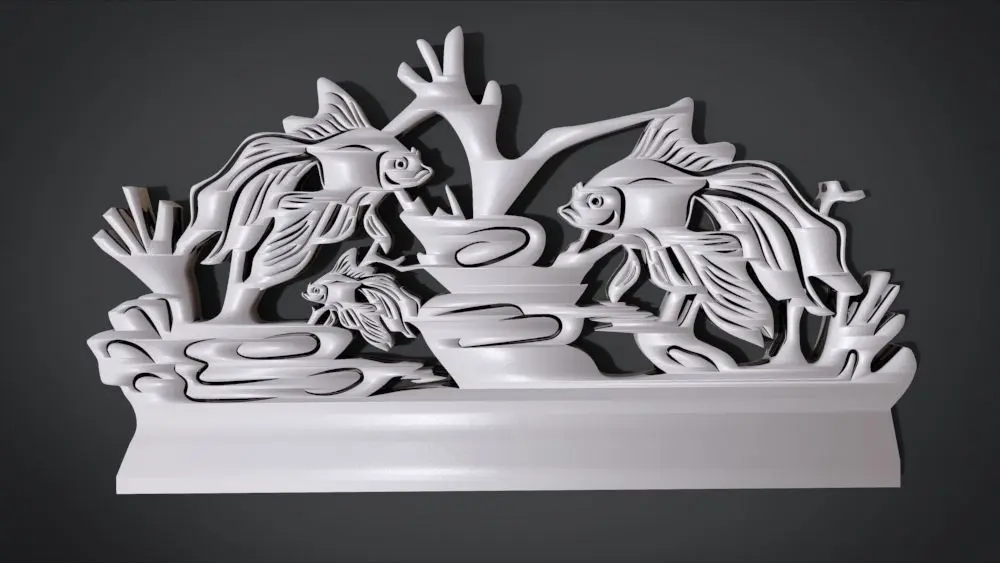 Unique Wall Ornament with Fish Ornament motif 3D model done in Blender.