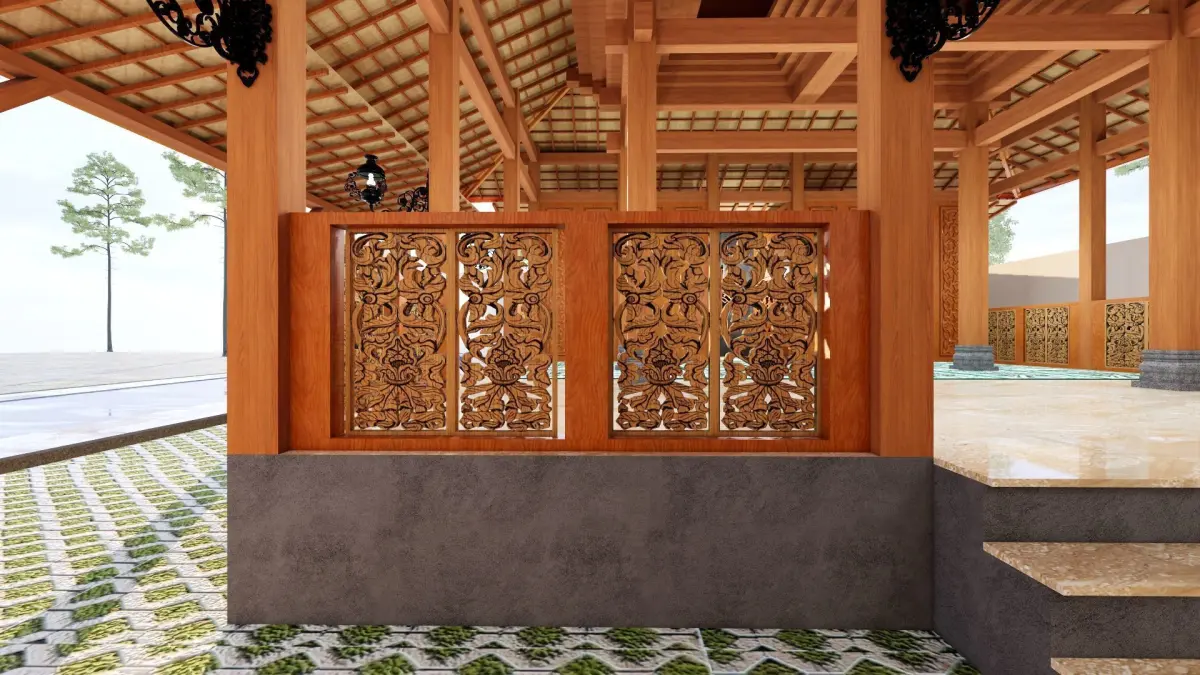 wooden Mosque prayer roomeditable wudhu place mihrob bathroommusholaready to renderlightingtextureclassic lamppshop drawing
