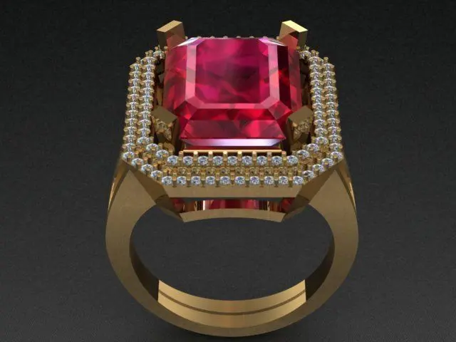 Unisex Ruby ring with diamonds in yellow gold.