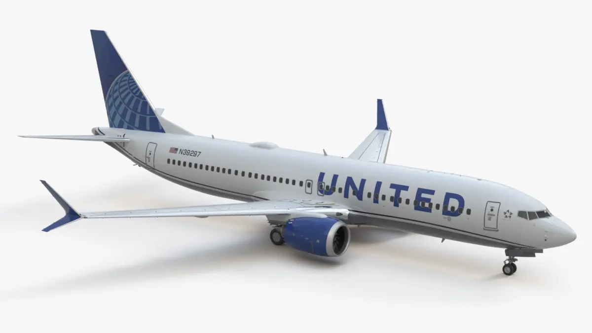 United Airlines Boeing 737 Max 8 is a 3d model of a commercial aircraft, showcasing the distinctive design and branding of United Airlines, widely used in modern aviation.