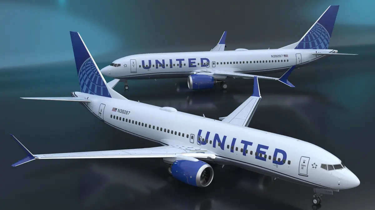 United Airlines Boeing 737 Max 8 Rigged is a 3d model of a commercial aircraft, fully rigged for animation and simulation, showcasing the iconic design and branding of United Airlines.