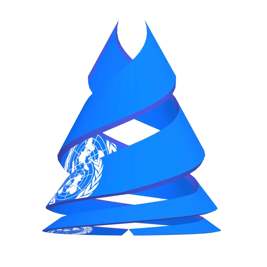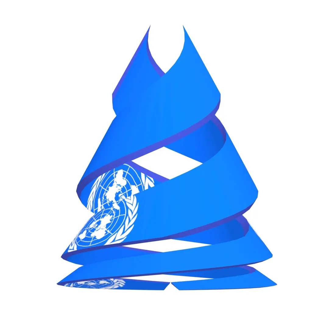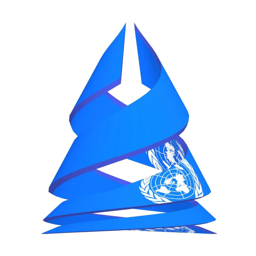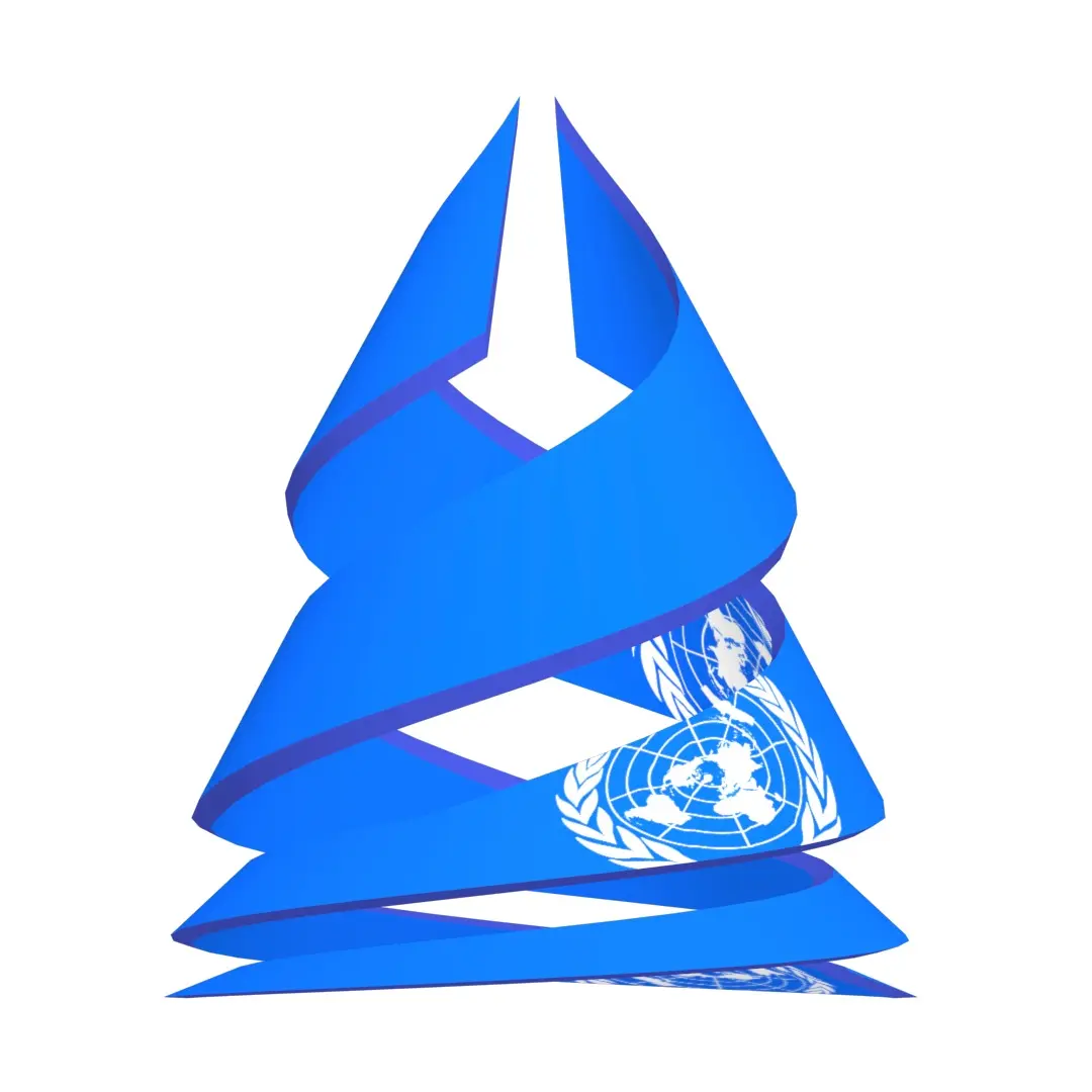 A United Nations Flag on double helix structure 3D model of different extensions, It is a sky blue banner containing the United Nations’ emblem in the centre. The emblem on the flag is coloured white; it is a depiction of the world map in the azimuthal equidistant projection (centred on the North Pole and the International Date Line), surrounded by a pair of olive branches. The United Nations (UN) is a diplomatic and political international organization with the intended purpose of maintaining international peace and security,