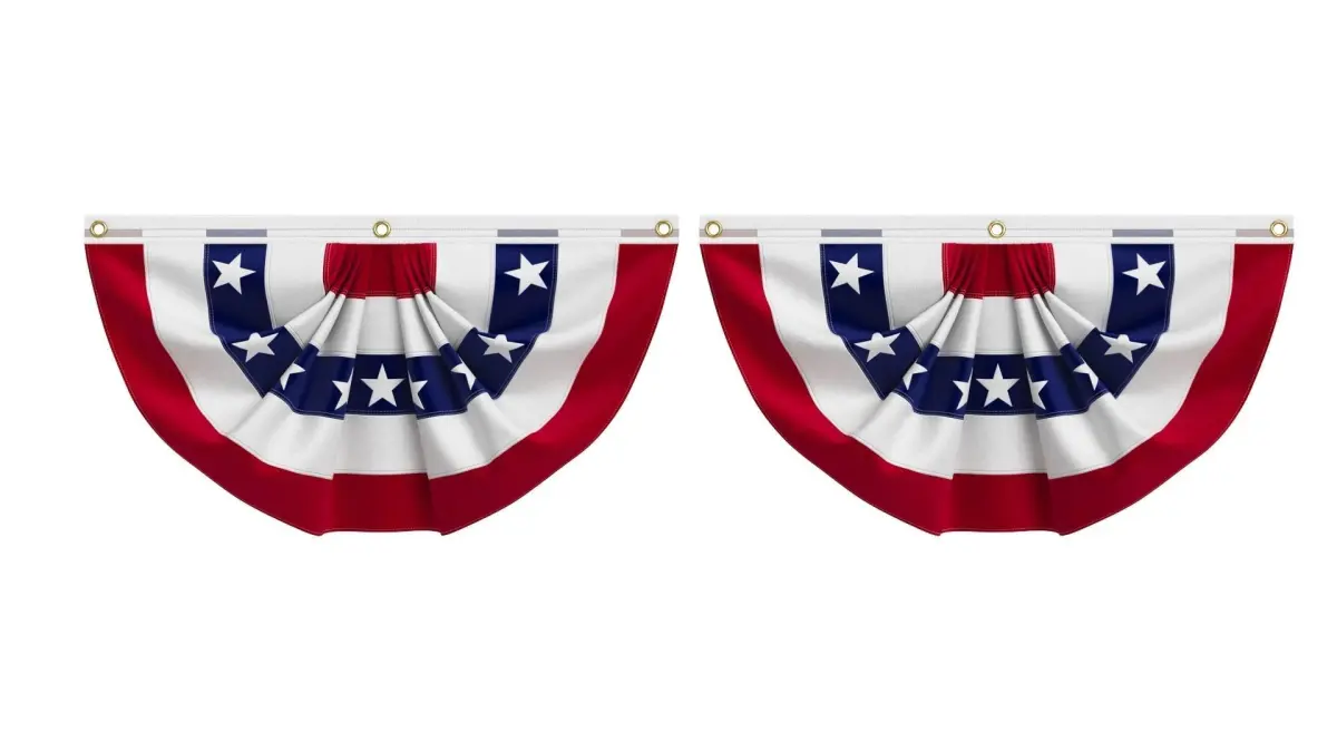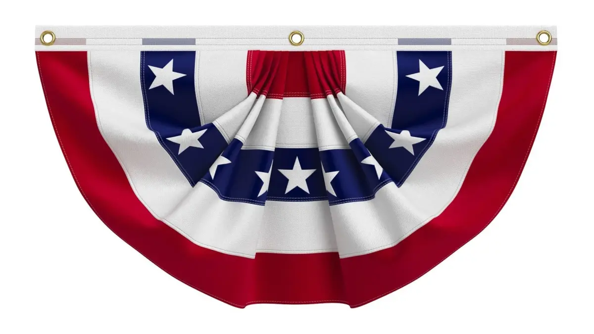 United States Flag Bunting is a 3D model of a pleated semi-circle flag representing the United States. It is made of pleated fabric and can be attached to various surfaces such as a string, rope, wall, or special plank.The decorative American flag is commonly used for patriotic celebrations in the United States. The US flag has a distinctive design resembling a semi-circle or fan shape. The design includes the red, white, and blue colors of the American flag arranged in pleats. This design is frequently utilized for decorative and patriotic purposes during national holidays, parades, and events. The flag represents unity, freedom, and the values of the United States. It is used in various contexts such as American symbols, US history, political news, trade exhibitions, international politics, national policies, embassies, citizenship identification, and state distinctions promotional projects.