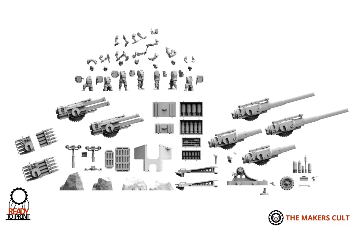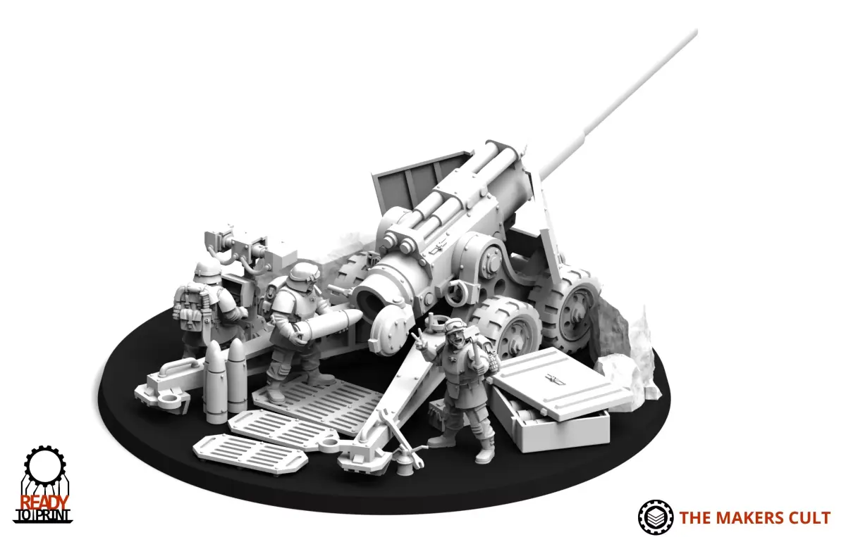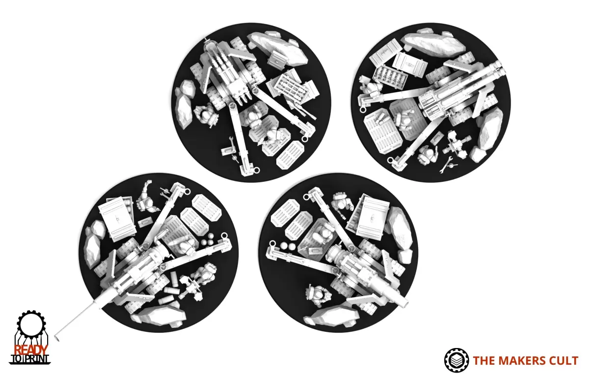 Multipart kit designed for a 130mm base. This artilery set comes with 4 main weapon options, and a customisable crew! presupported for resin printing and some parts hollowed where needed.