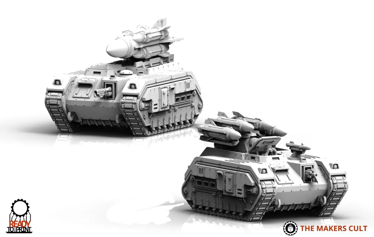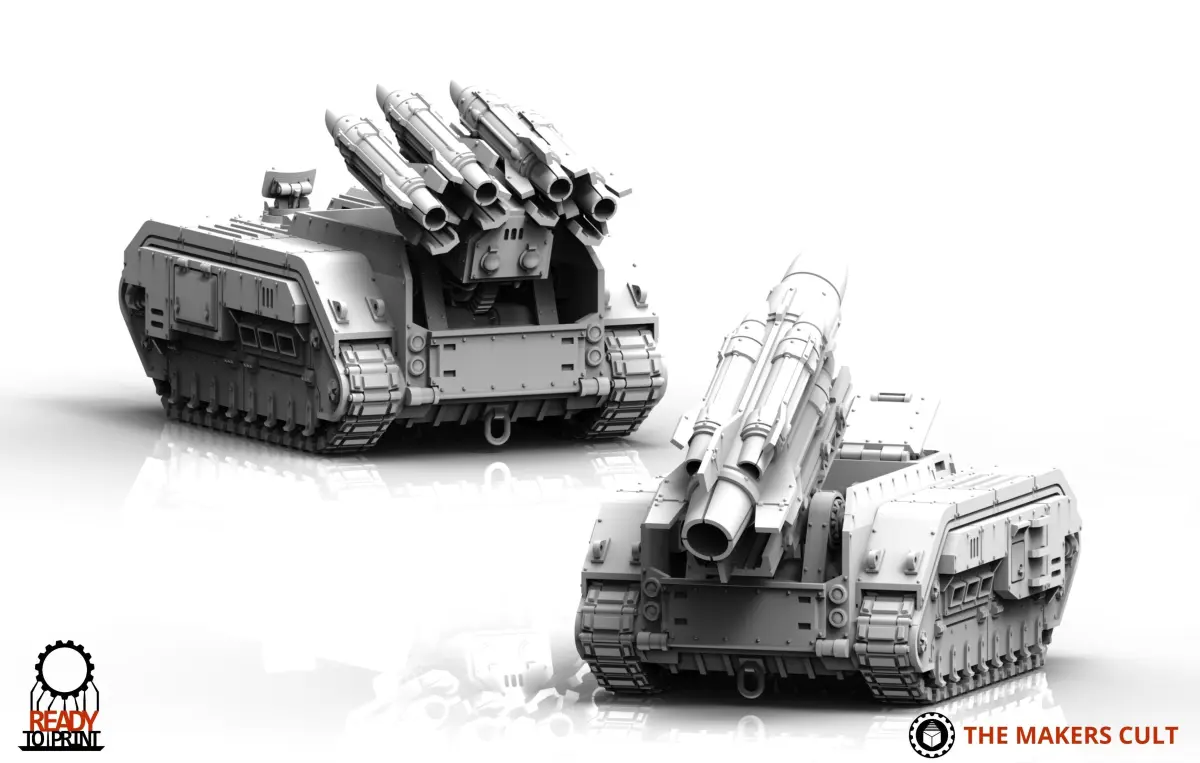 Missile tanks, great for ranged support, these tanks come with 2 design options and optional aesthetical touches such as a tank commander and exterior panels.