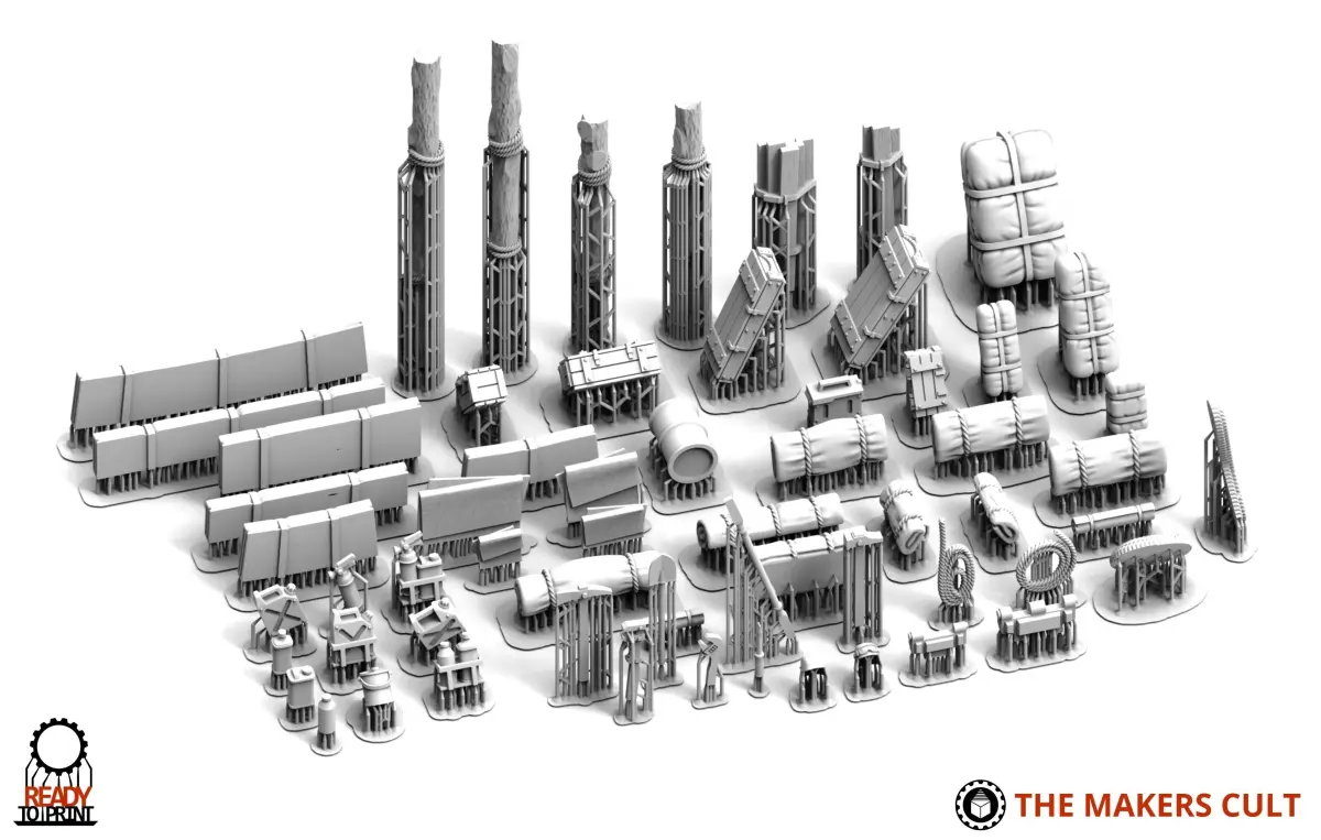 Lots of individual bits for sticking on to tanks, boxes, containers, tarp, bed rolls, fuel, logs, rop and tools!