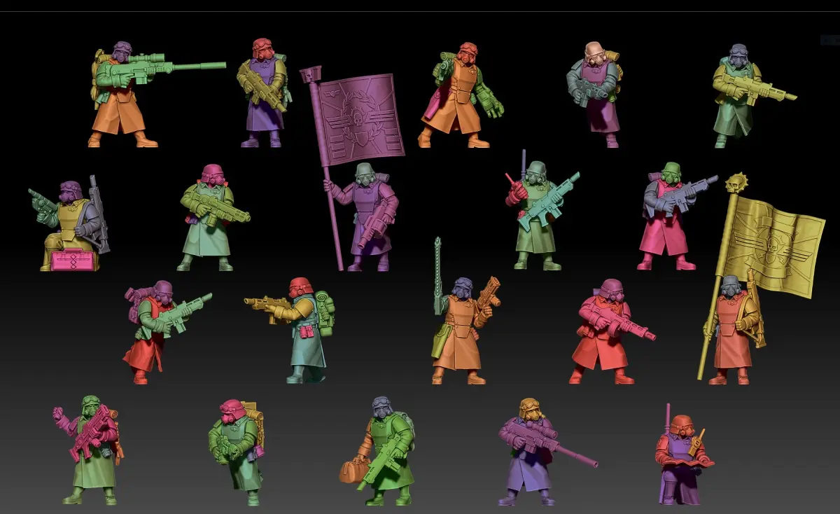 Multipart kit, modular with out other guard ranges.This is no ordinary Infantry kit, this one is HUGE and comes with parts to create medics, radio ops, flag bearers, officers as well as infantry! perfect for Killteam!