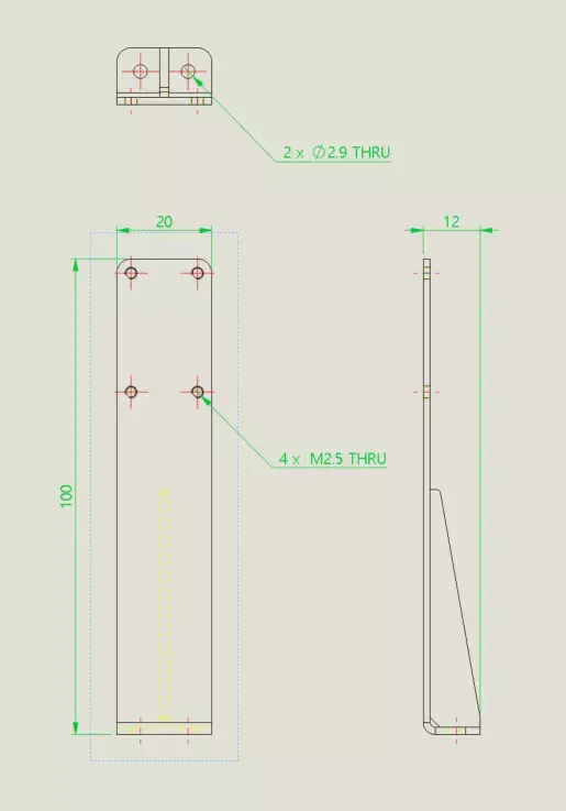 Technical Specification: Precision-designed for industrial environments.Mounting: Compatible with M2.5 screws and standard sensor rails.Durability: Optimized geometry for high-strength steel or aluminum fabrication.High-quality industrial sensor mount.