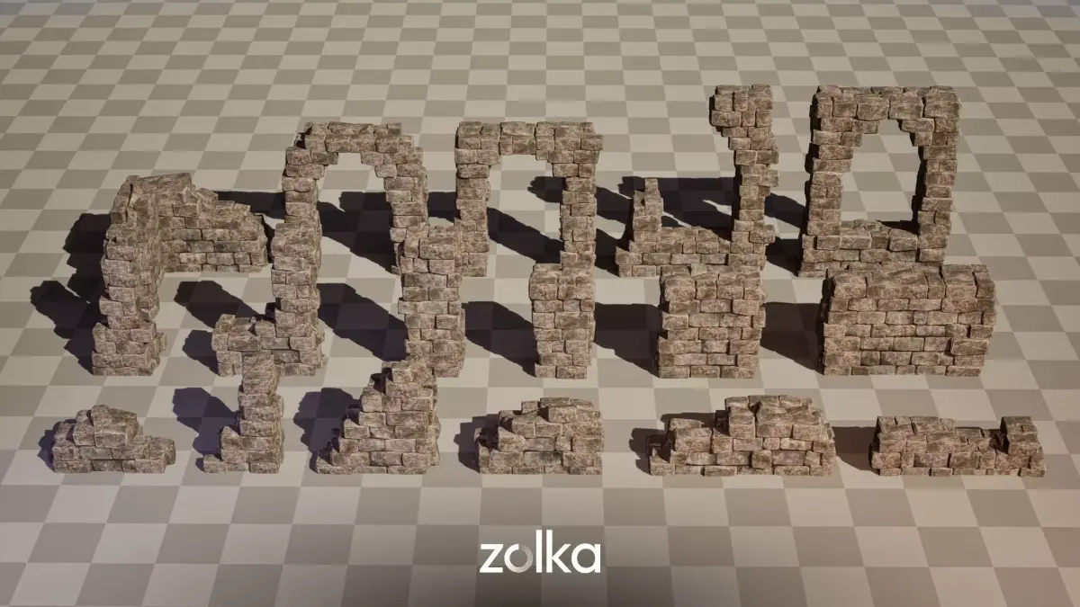 Universal Stone Ruins Pack contains a clean, modular set of stone ruin models designed for fast level assembly. The kit focuses on perfect snapping, tidy pivots and an easy-to-tune master material so you can match the look of your scene in minutes.