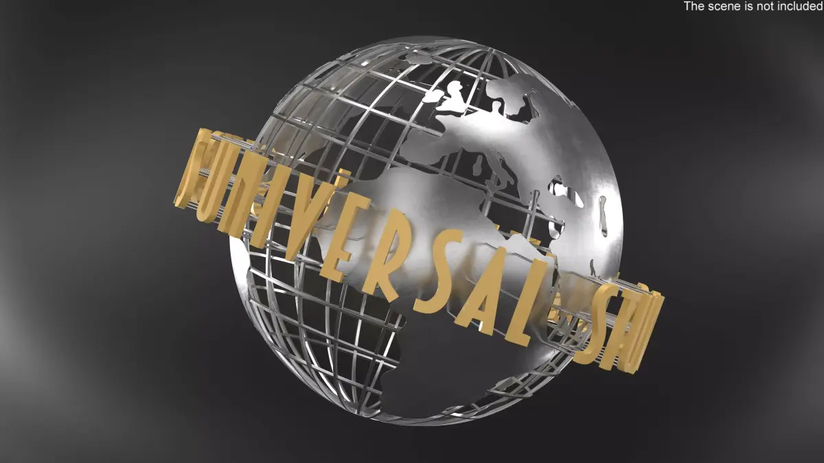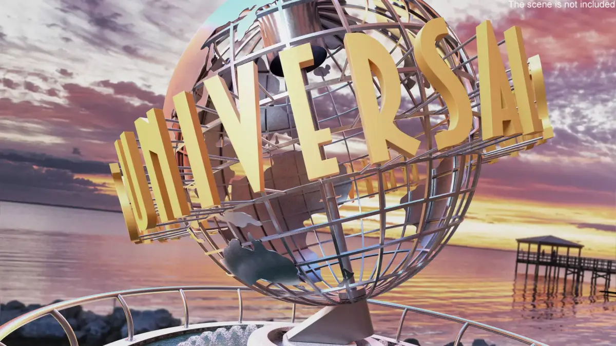 Universal Studios Metal Globe is a 3d model of a stylized globe with the word "universal" encircling it, reminiscent of iconic logos.