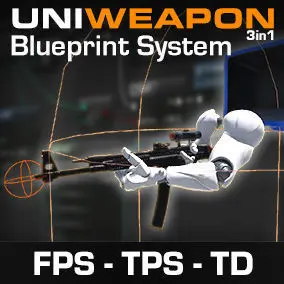 UniWeapon features a playable FPS/TPS/TD Character which has a pre-set weapons, but it uses them from a Data Table, which means it has endless possibilities! Just add a new row in the included Data Table, fill it in with the weapons and Ammo values, and you're done! Watch the Demo video for detailed instructions.