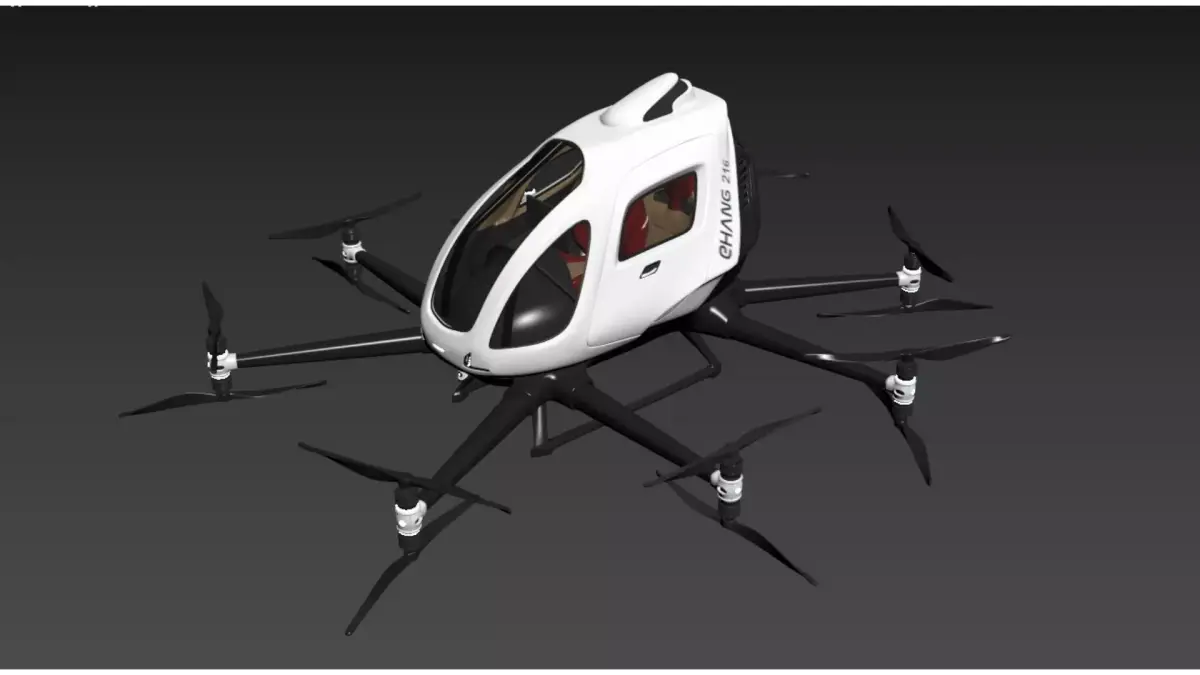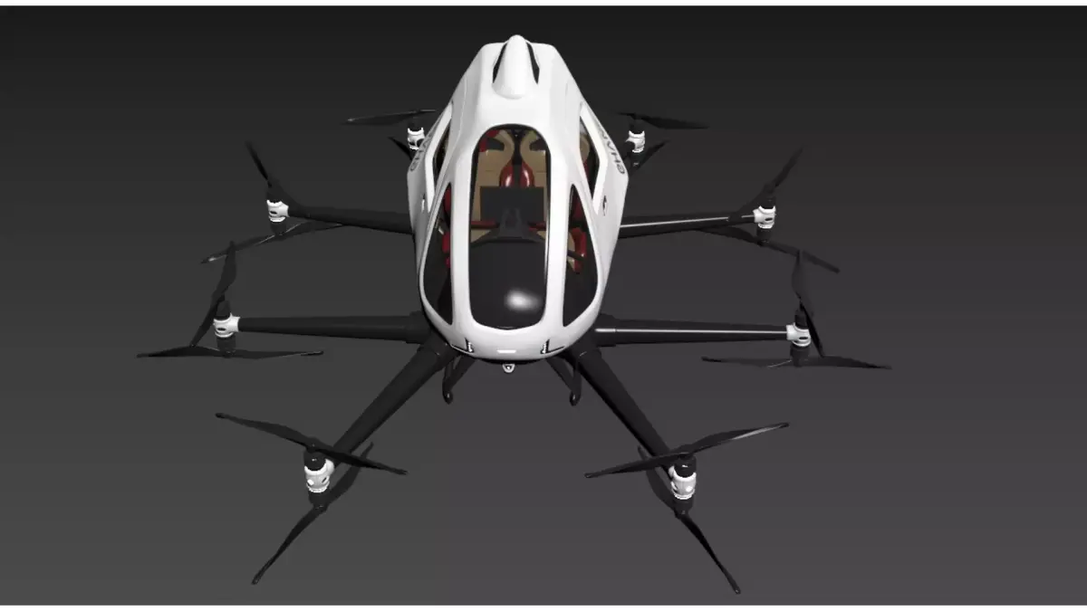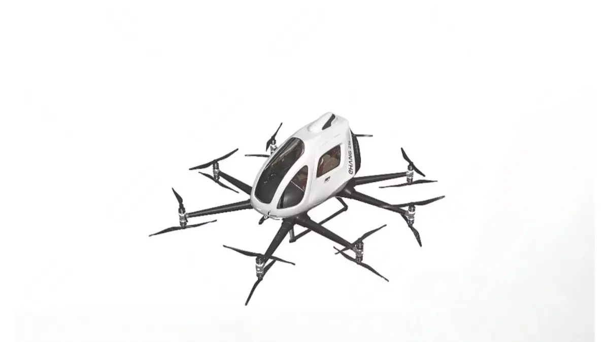 This is the EHang EH216-S autonomous passenger-carrying eVTOL aircraft, the world's first pure electric vertical take-off and landing (eVTOL) aircraft to obtain airworthiness certification. It adopts an 8-rotor-arm and 16-rotor design, supports 2 passengers, and is equipped with core technologies such as a full-redundancy safety system, preset-route autonomous flight, and cluster management and scheduling. Focusing on scenarios like urban air commuting, low-altitude sightseeing, and emergency transportation, it is one of the iconic products in the low-altitude economy sector.
