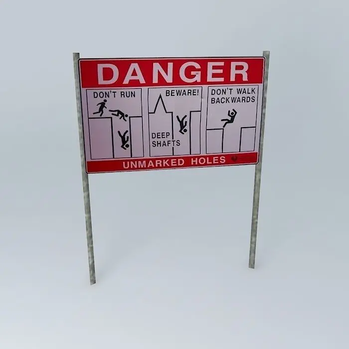 This 3D model was originally created with Sketchup 8 and then converted to all other 3D formats. Native format is .skp 3dsmax scene is 3ds Max 2016 version, rendered with Vray 3.00 A typical Danger Sign from Coober Pedy in Australia. There signs signal the danger about unmarked opal holes everywhere around the town of Coober Pedy.