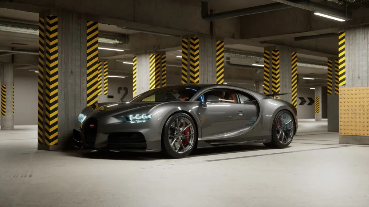 Underground Car Park with Bugatti Chiron in Unreal Engine 5.4.4 scene..
