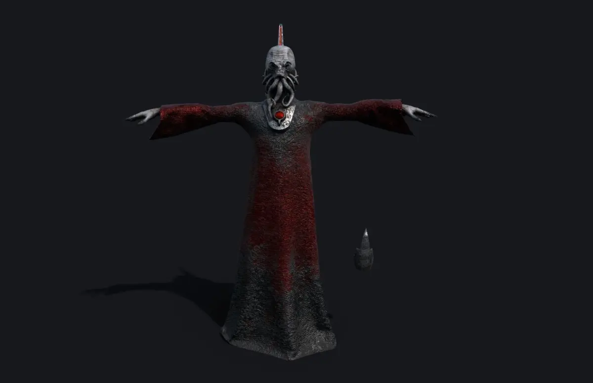 This Mind Flayer/Cthulhu-inspired character model is unrigged, but T-posed, UV unwrapped and textured, ready for use in your own project(s). The PBR-textures are 1024 pixels.