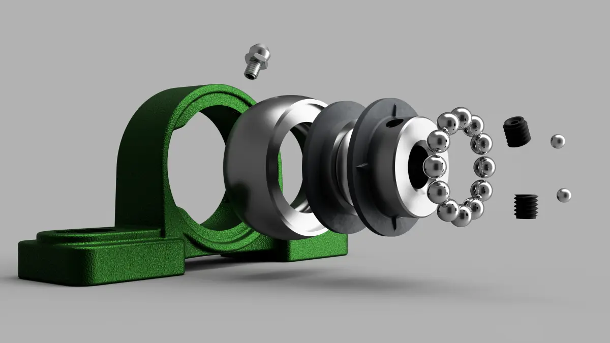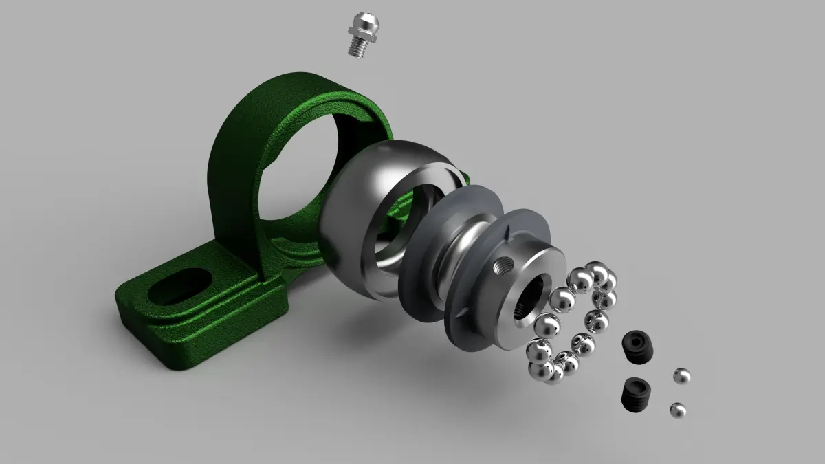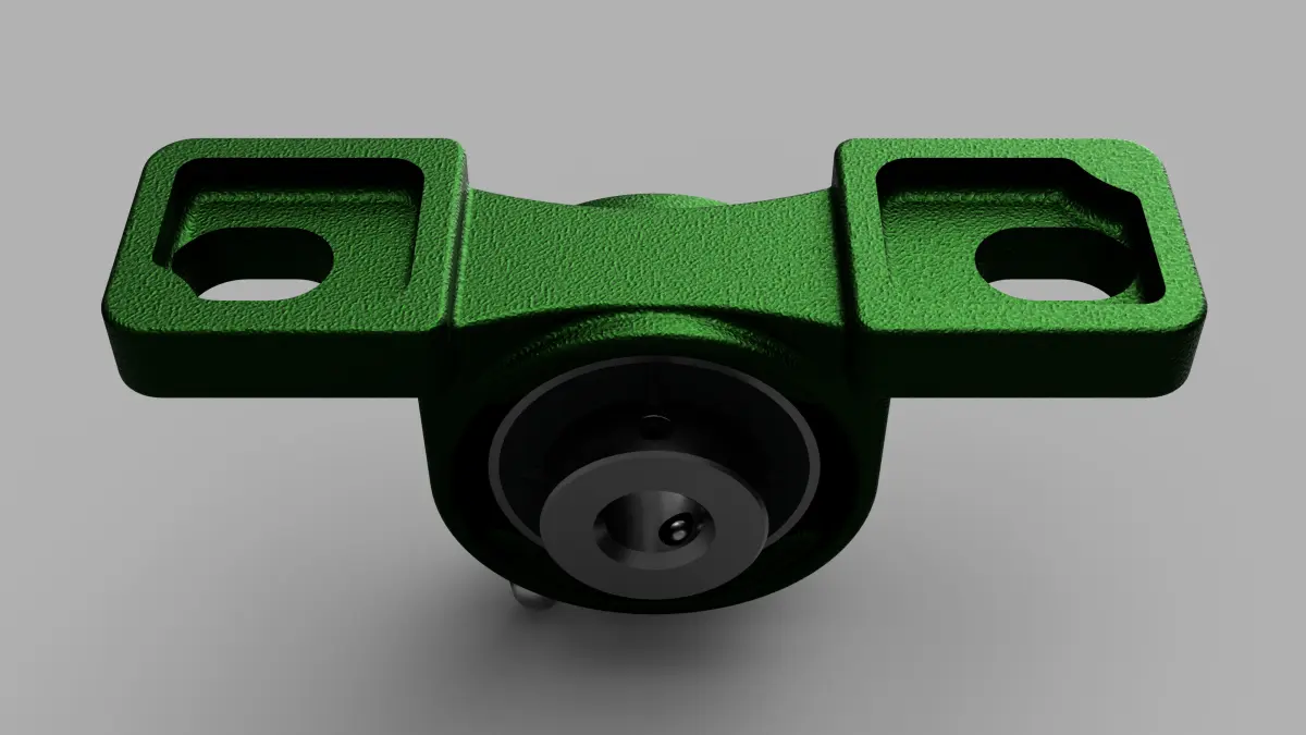 Reverse-engineered CAD model of Actual UPC 201 type of Pillow Block Bearing. Specification: Bore=12mm Housing Length= 124mm Housing Width= 35mm Bearing OD=46mm Hub Length=30 and so on. This is a self-aligning bearing and housing assembly and so the bearing can adjust itself within the housing depending on the axis of the shaft connected to it. 2 Hexagon Socket Ball End Grub Screw is provided to lock the shaft firmly inside the bore of the bearing. Also, a Lubrication lid is provided to lubricate the bearing hub’s outer and housing’s inner contact surfaces.