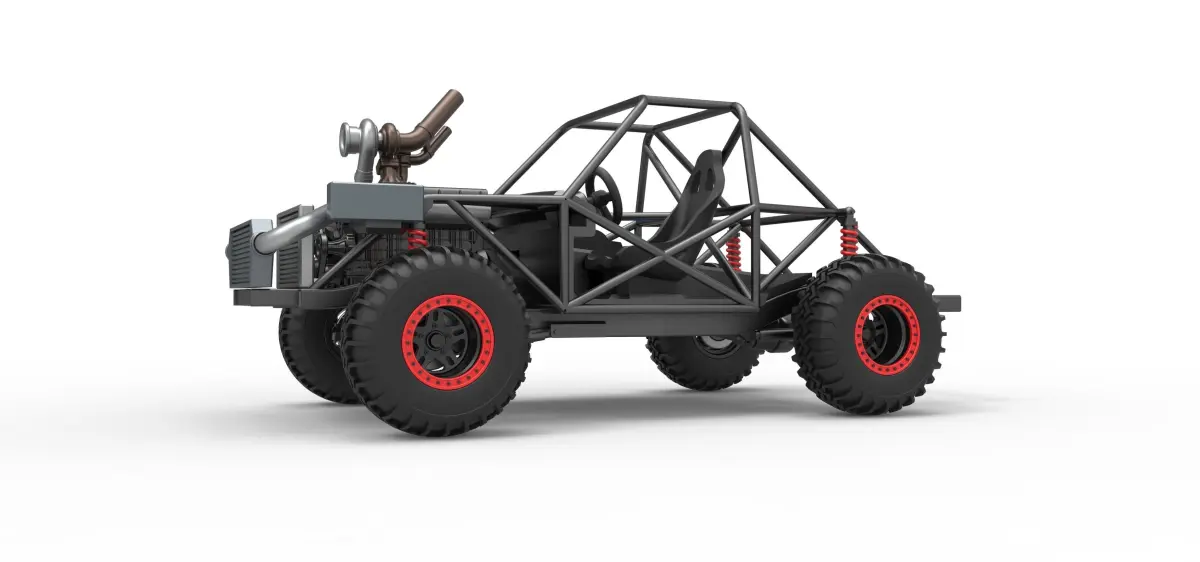The model consists of parts: Air tube, Body, Compressor part, Engine, Exhaust part, Intercooler, NOS, Radiator, Rims, Seat, Shifter, Steering wheel, Tank, Tires.