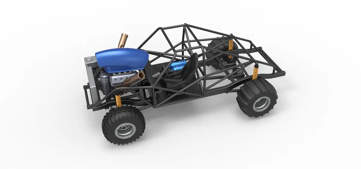 The model consists of parts: Air intake part 1-3, Body, Engine main part, Front rims, Front tires, Left exhaust pipes, NOS, Radiator, Rear rims, Rear tires, Right exhaust pipes, Scoop, Seat, Shifter, Steering wheel, Tank.