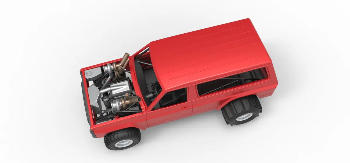 The model consists of parts: Body, Engine main part, Engine top part, Front insert, Front rims, Front tires, Intercooler, Left compressor part, Left exhaust part, NOS, Rear rims, Rear tires, Right compressor part, Right exhaust part, Seat, Shell, Shifter, Steering wheel, Tank.