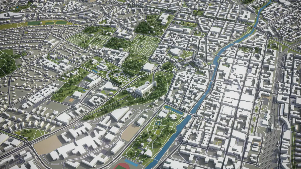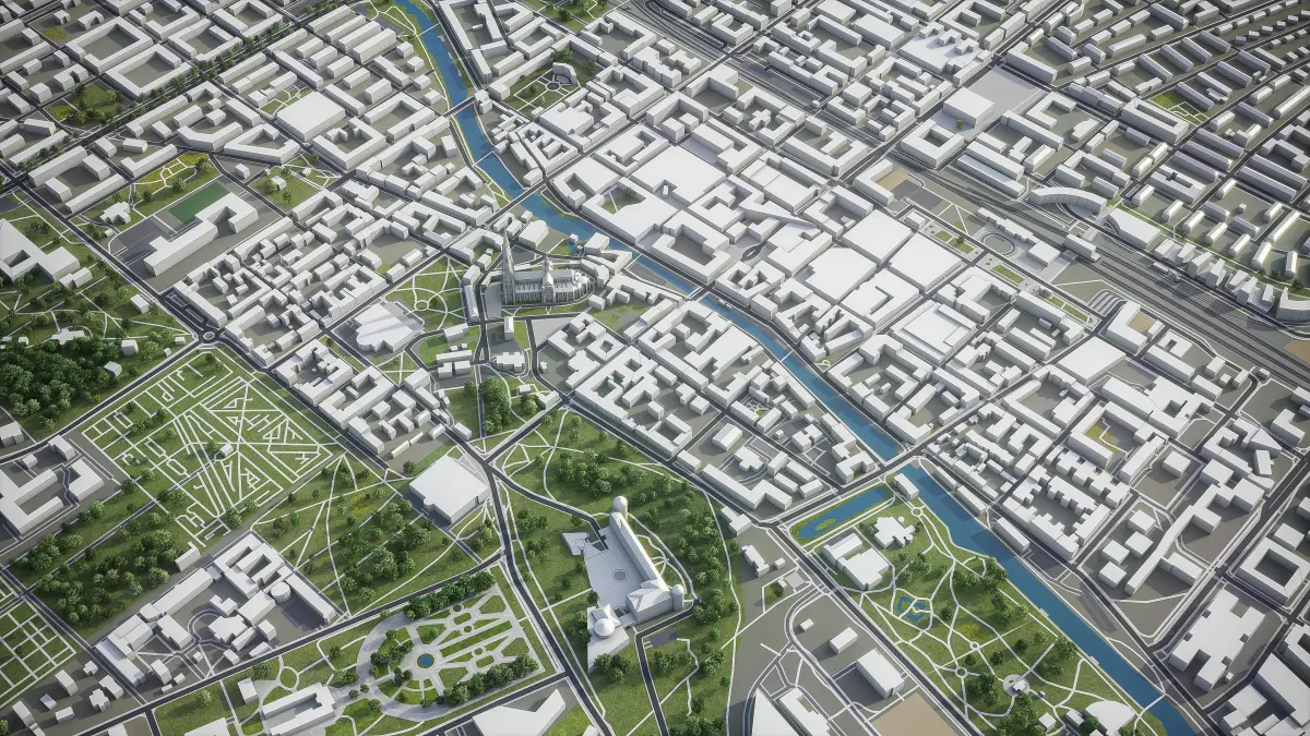 - Full city extents up to 100 x 100 km — or crop to an area of interest for better format compability and scene performance
