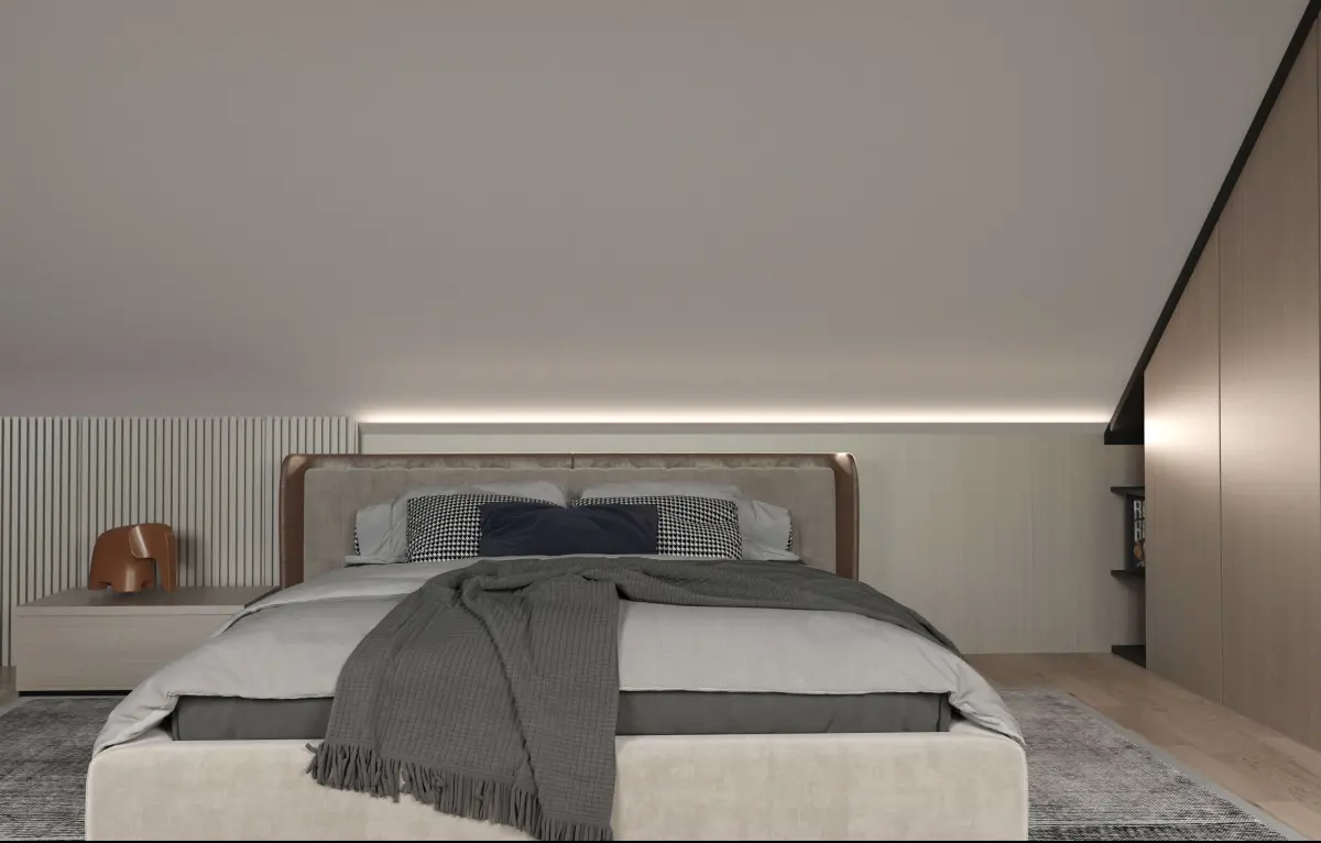 Upstairs Bedroom Interior Scene | Cozy & Stylish Design | 3ds Max + Corona RendererThis beautifully designed upstairs bedroom 3D scene captures a quiet, cozy retreat, perfect for a main or secondary bedroom in a modern home. With a thoughtful layout, soft lighting, and realistic materials, it’s ideal for high-end architectural visualizations or interior design portfolios.Created in 3ds Max + Corona RendererReal-world scale and clean modelingFully textured with high-quality materials and lightingReady-to-render cameras includedOrganized and editable layers Interior Highlights:Bed: Upholstered or wood-frame bed with layered bedding and soft textilesNightstands: Modern side tables with lighting and accessoriesLighting: Ceiling pendant or chandelier + bedside lampsFlooring: Natural wood or carpetStorage: Built-in wardrobes or dressersDecor: Framed wall art, curtains, area rug, indoor plantsWindows: Upstairs-level views and natural lighting effectsPerfect For:Residential interior visualizationReal estate marketingBedroom furniture showcasingInterior design concept presentationsArchitectural CGI portfolios