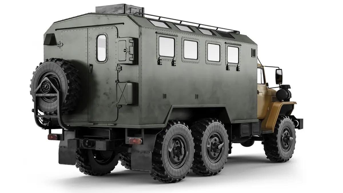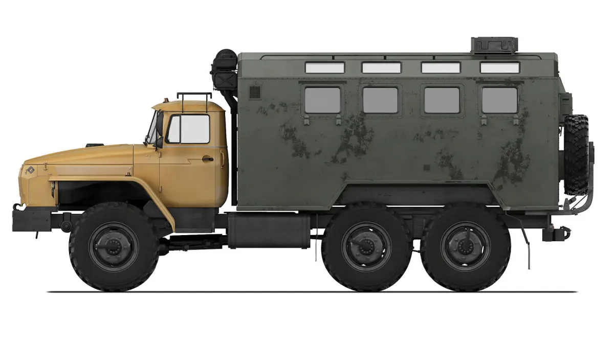 Ural-4320 with an armored van body. The main elements are prepared for TurboSmooth smoothing (2 Iteration). The body elements, equipment, wheels, and interior are worked out - conditionally.