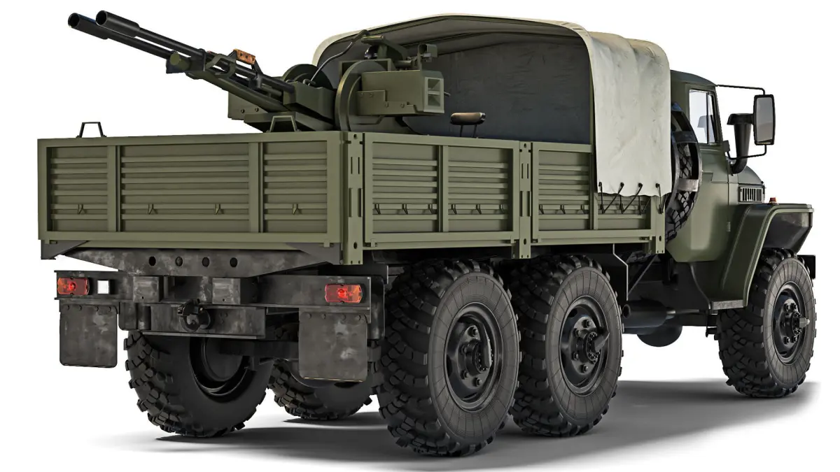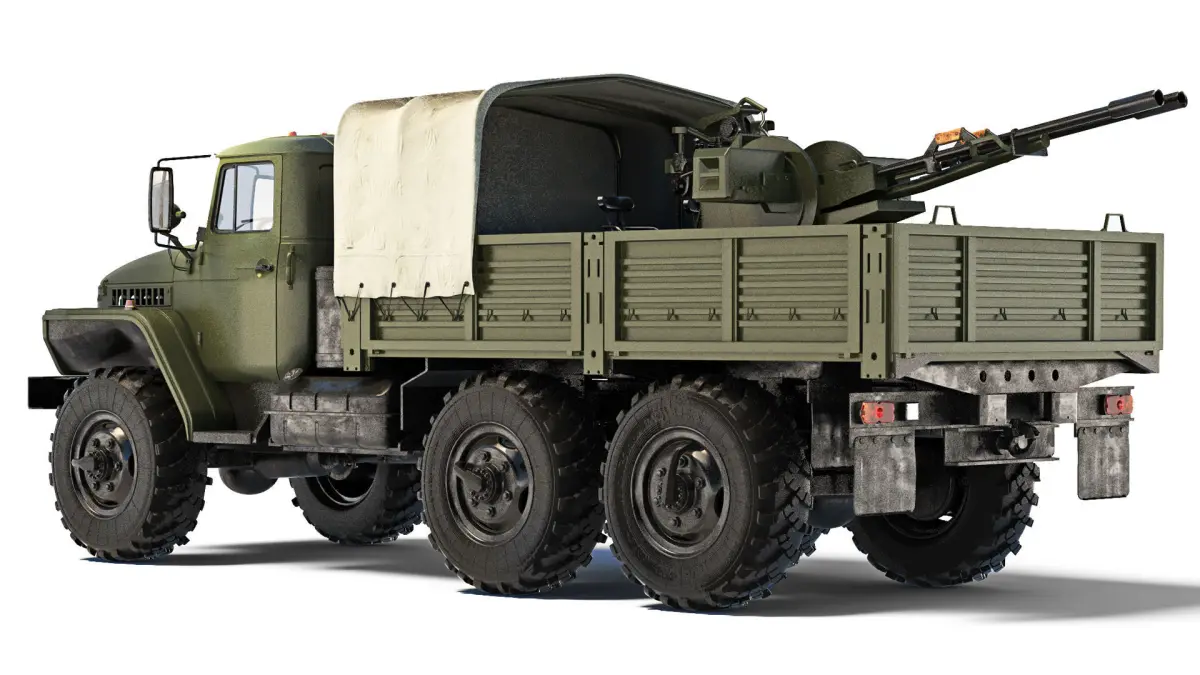 ZU-23 (23 mm anti-aircraft gun, index GRAU 2A13) is a Soviet 23-mm twin anti-aircraft gun, consisting of two 2A14 automatic guns. Installation on a Ural 4320 truck. The main elements are prepared for TurboSmooth smoothing (2 Iteration). Body elements, wheels, weapons have been worked out. The interior is conditional.