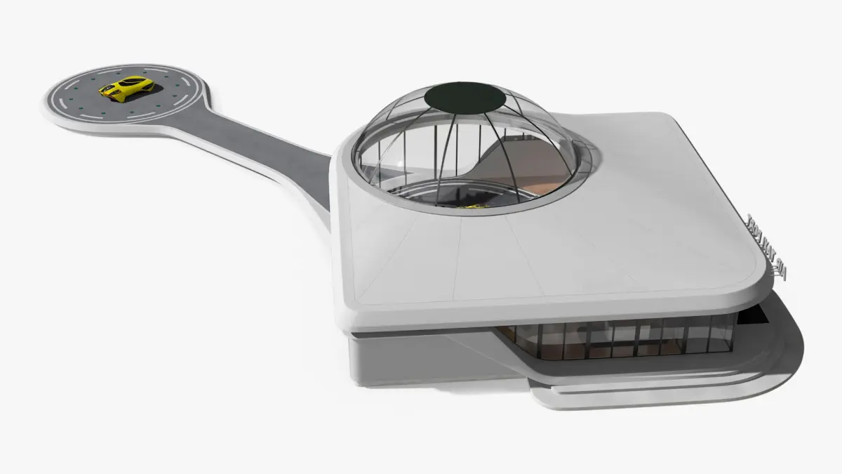 The design reflecting a harmonious blend of sustainability and advanced urbanism. The model showcases a sleek and imaginative interconnected through futuristic air port structure and flying car platforms.