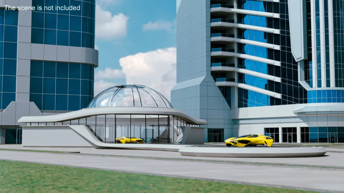 Urban Air Port with Futuristic Flying Vehicle is a three-dimensional model of sci-fi cityscape environment with a concept of futuristic style urban flying car.