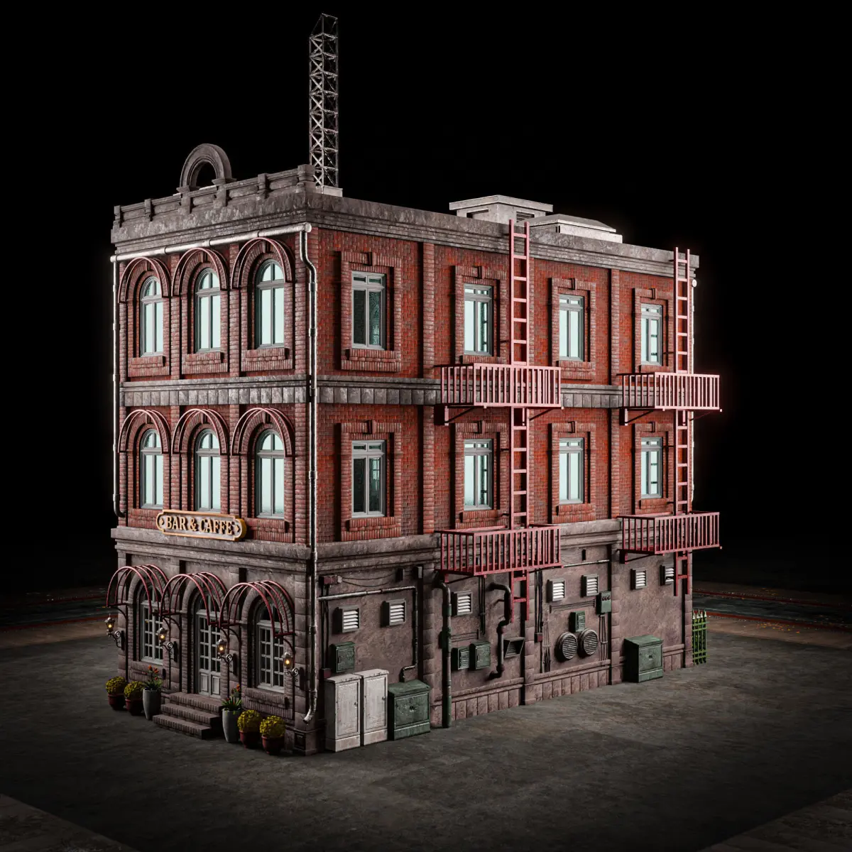 URBAN BUILDING OLD HORROR 4 Low-poly 3D model