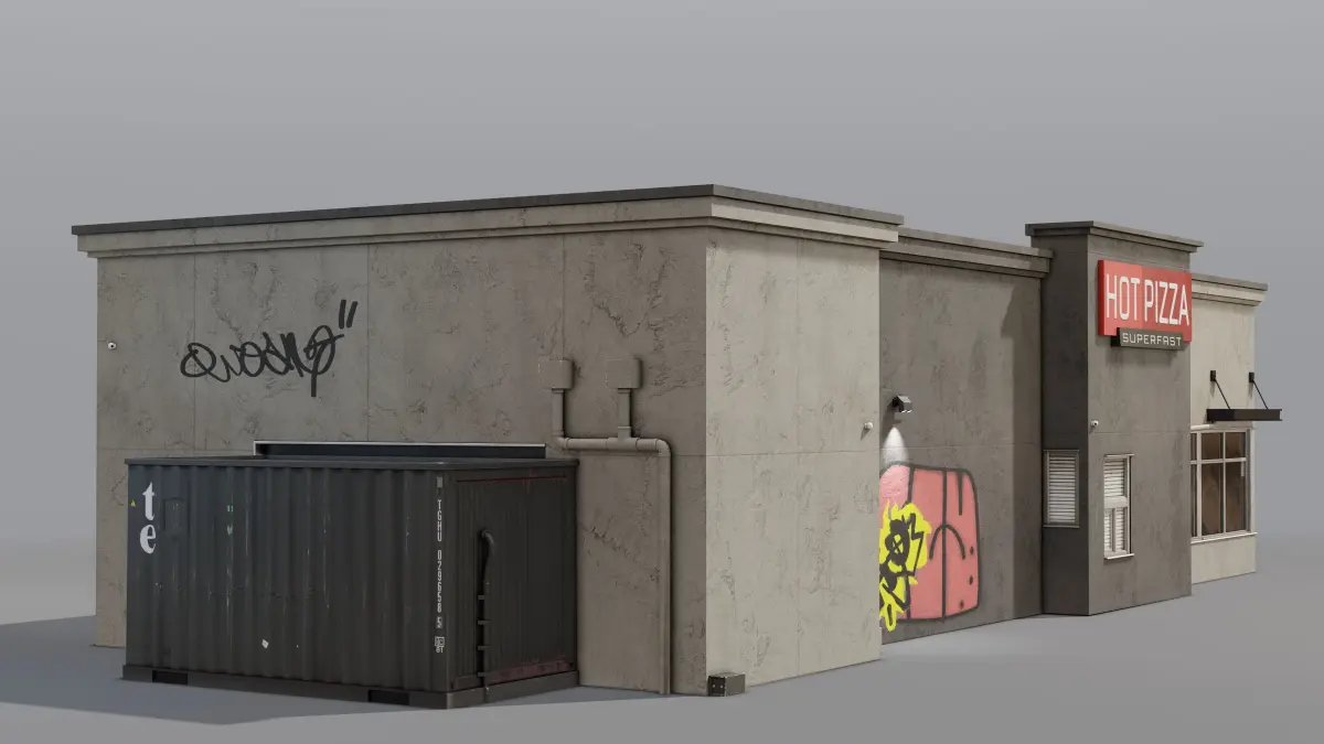 Graffiti details use UV2 channels. Stickers PSD has been provided for future edits.