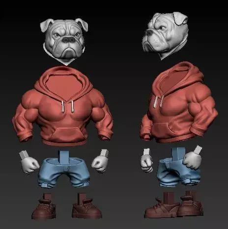 The model features stylized proportions, well-defined muscles, and urban clothing (hoodie and sneakers), ensuring excellent visual impact after printing, both in resin and FDM.