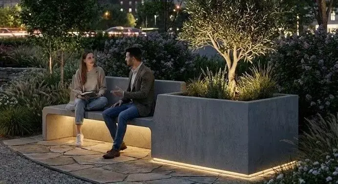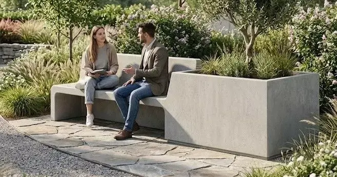 Dual Functionality: Seamlessly blends a durable concrete bench with a spacious planter box.