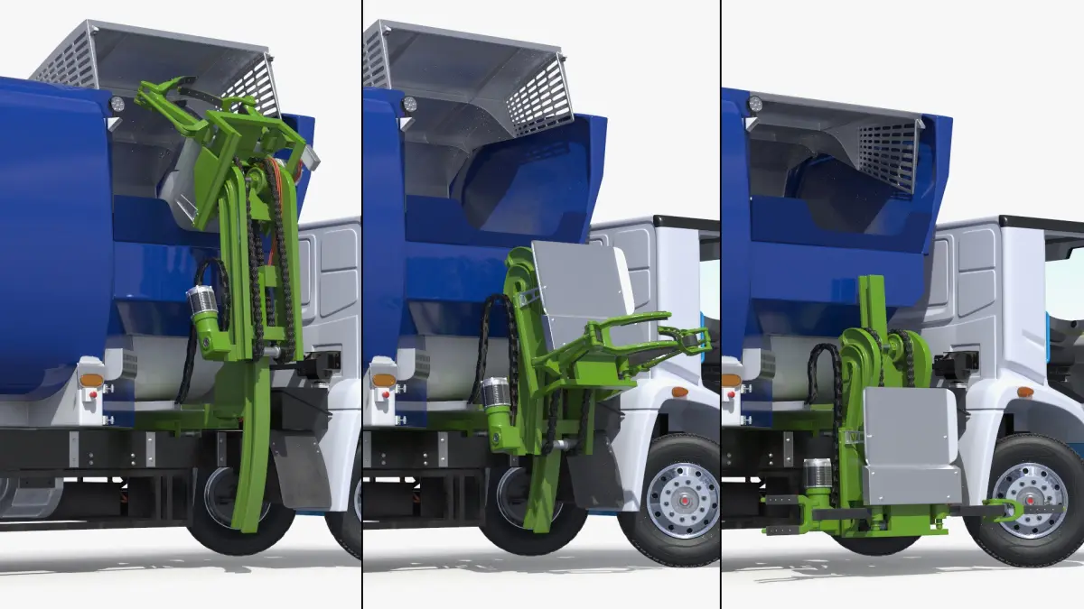 Urban Electric Waste Lorry White Blue Rigged is fully rigged and is ready to be animated. You can easily position it the way you need or animate it the way your project requires using helpers in 3D Studio Max. See the turntable to get an idea of how rigging works.