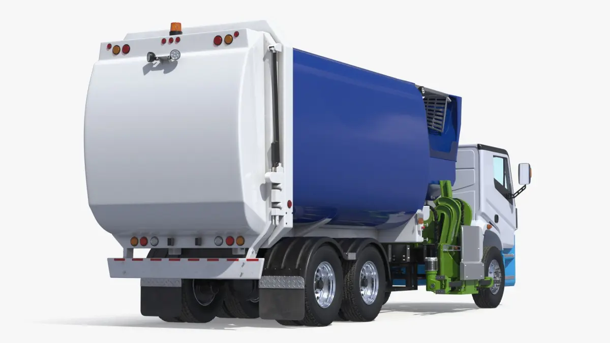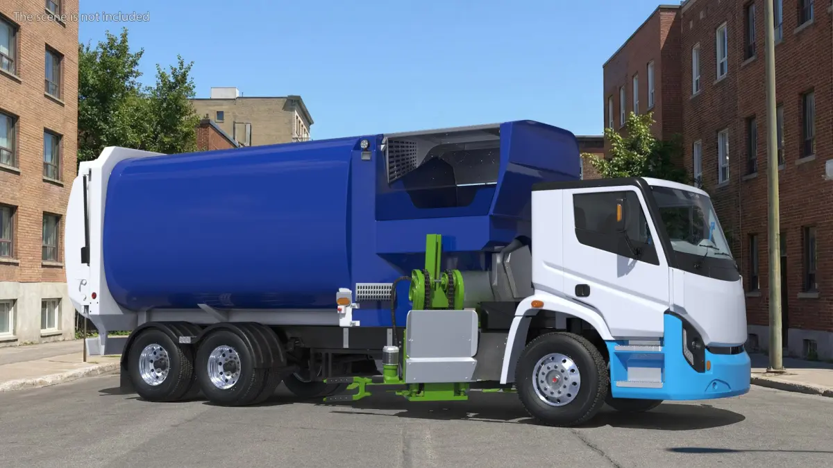 Urban Electric Waste Lorry White Blue Rigged is a 3d model of an advanced waste collection vehicle designed for efficient and environmentally conscious operations.