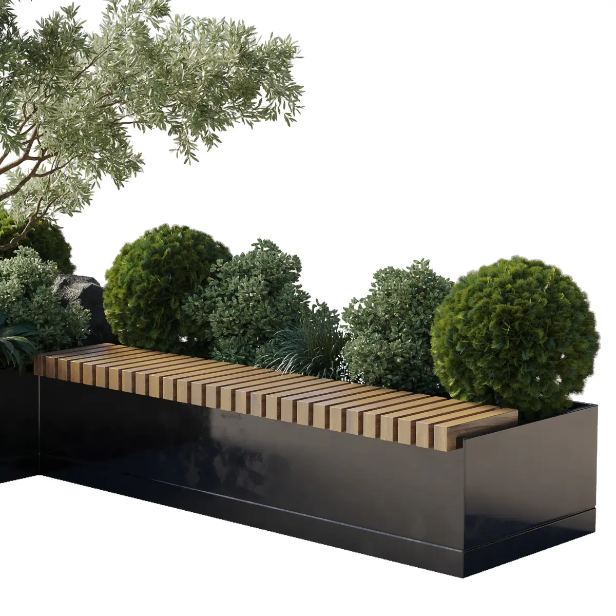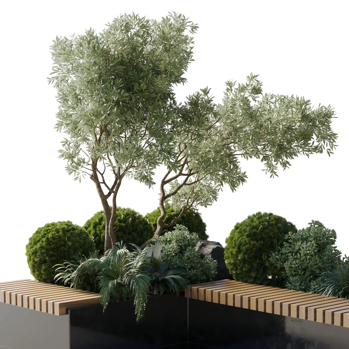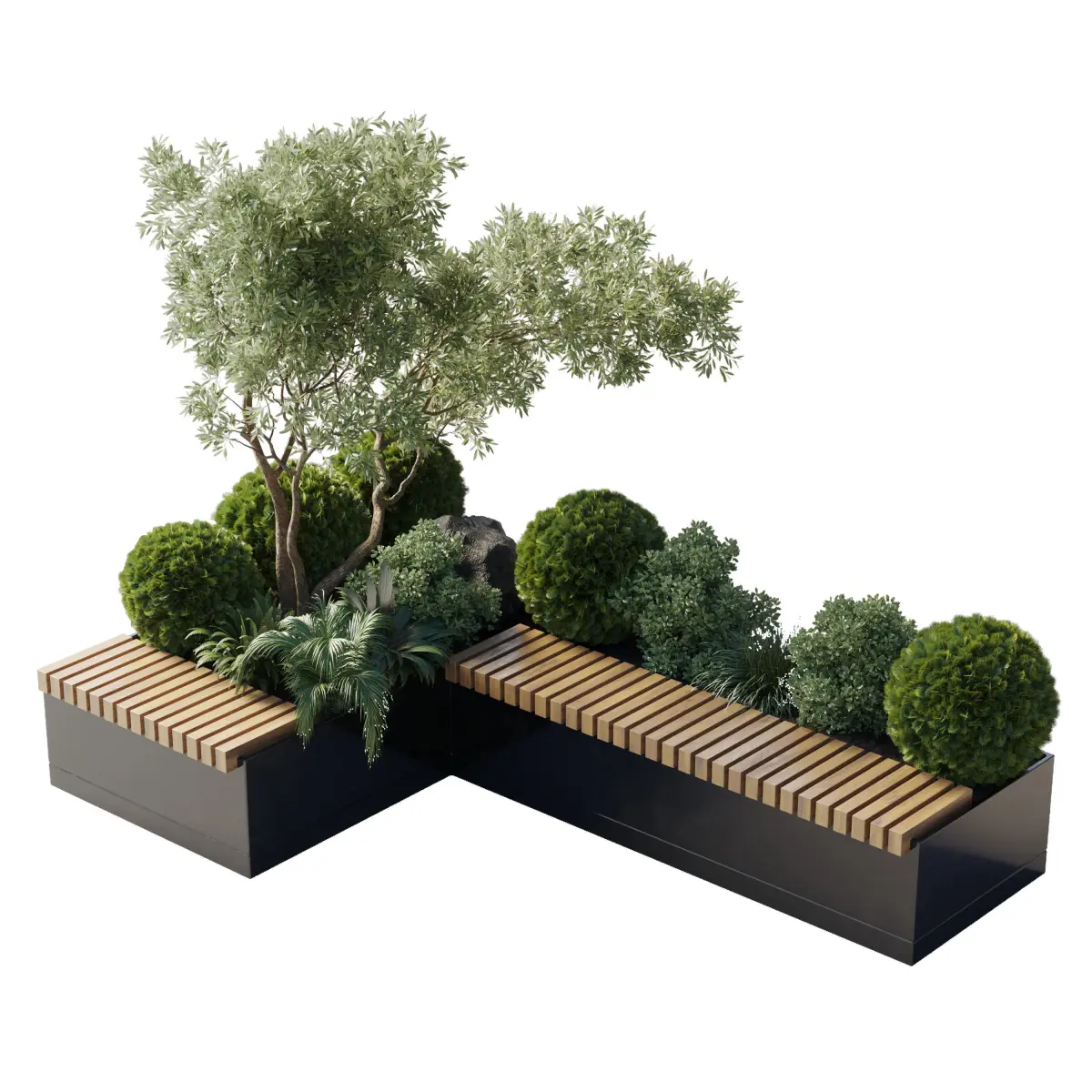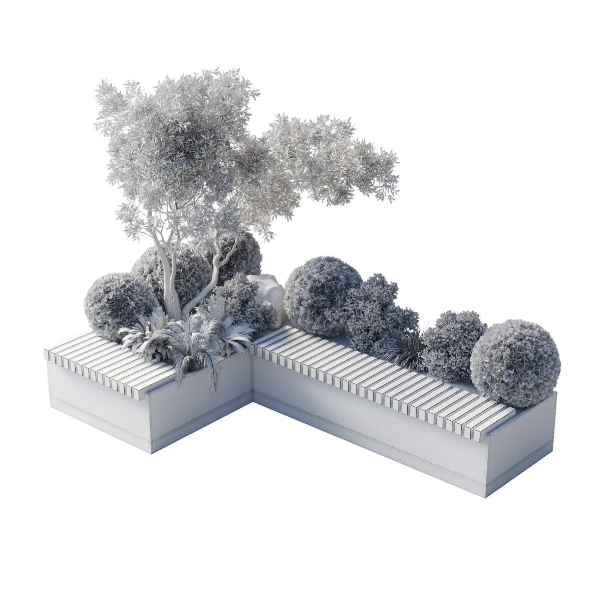 Urban Environment_Urban Furniture_Green Benches_Collection Plants and Tree set 05