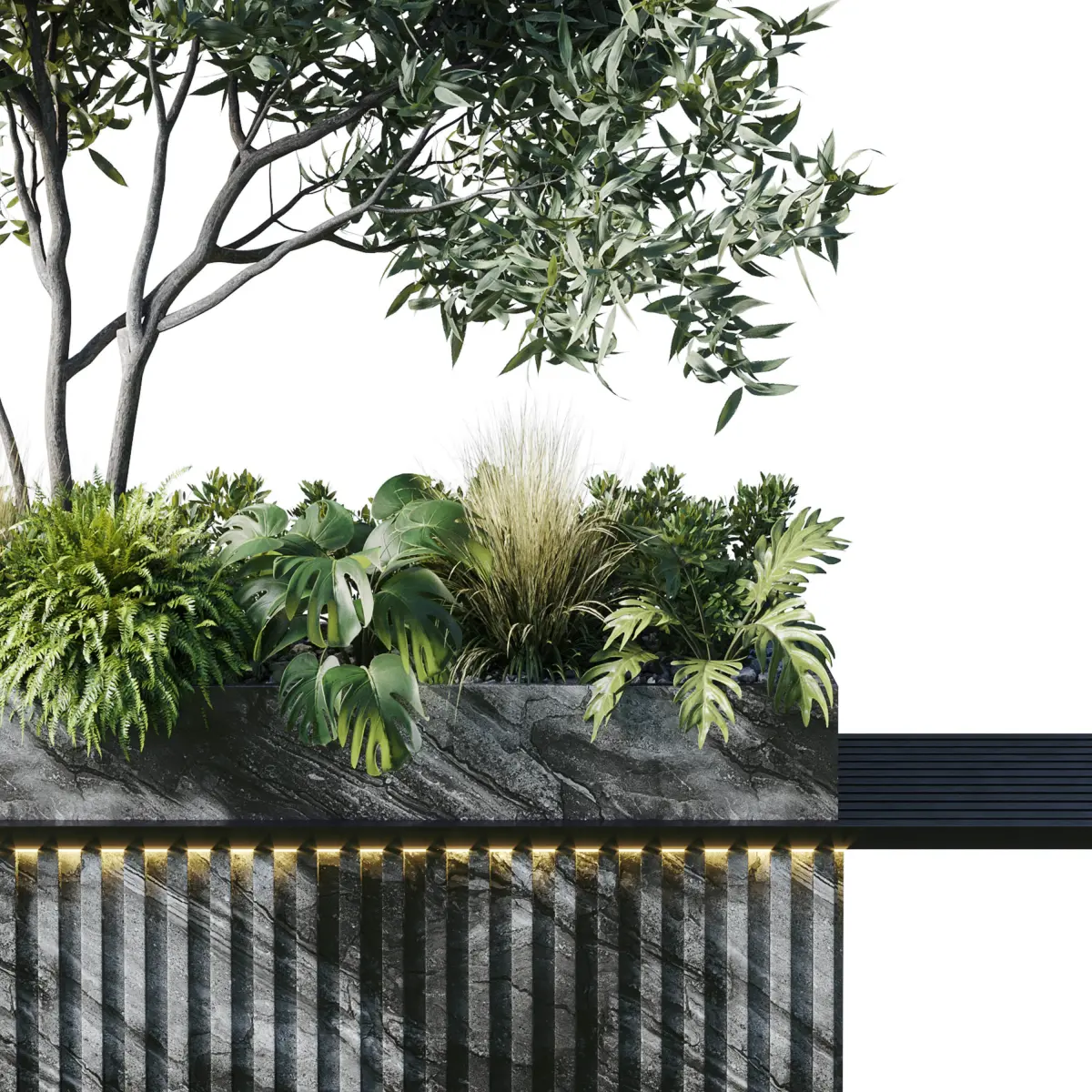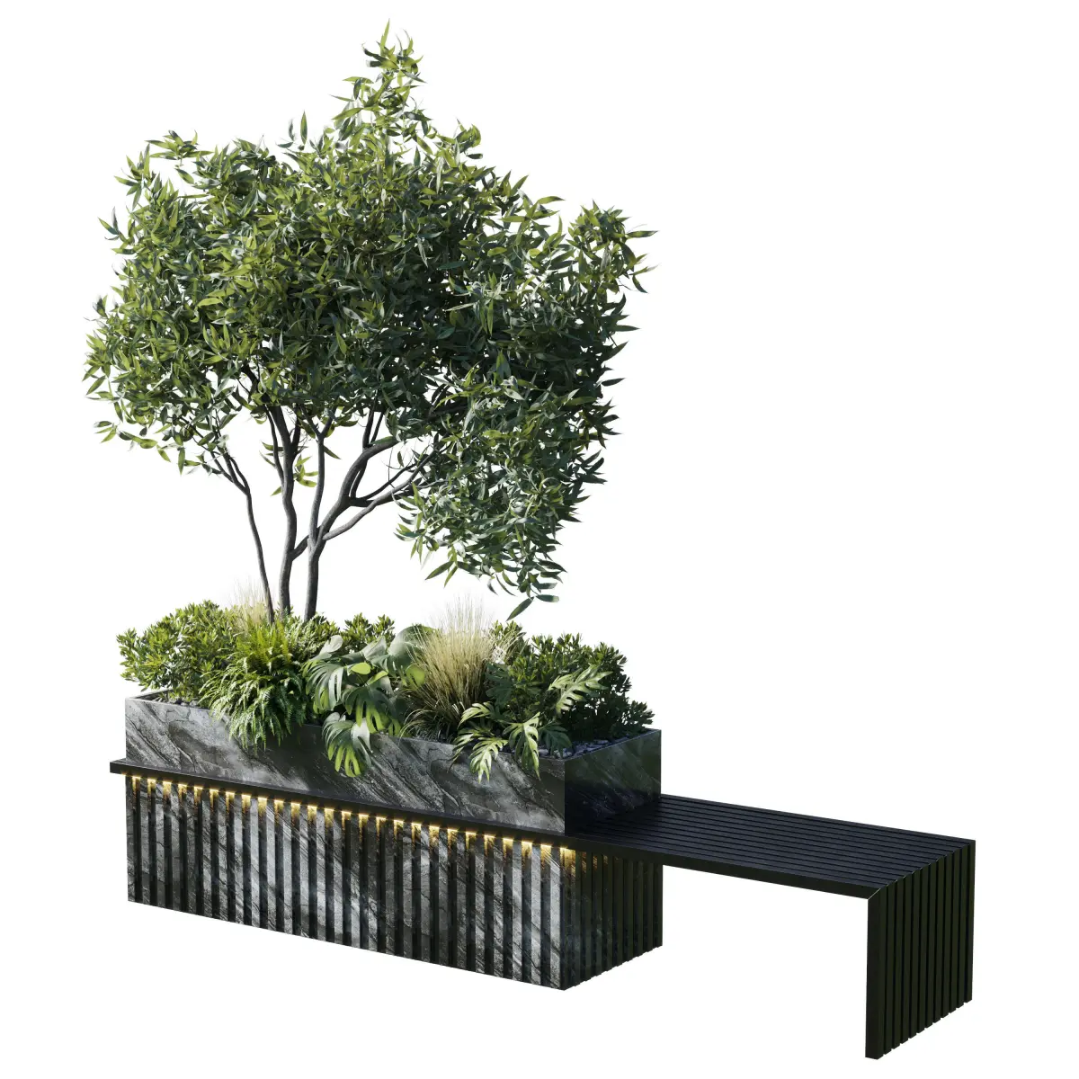 Urban Environment Urban Furniture Green Benches Low-poly 3D model