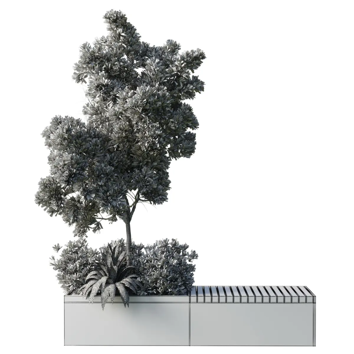 Urban Environment - Urban Furniture - Green Benches With plants 32