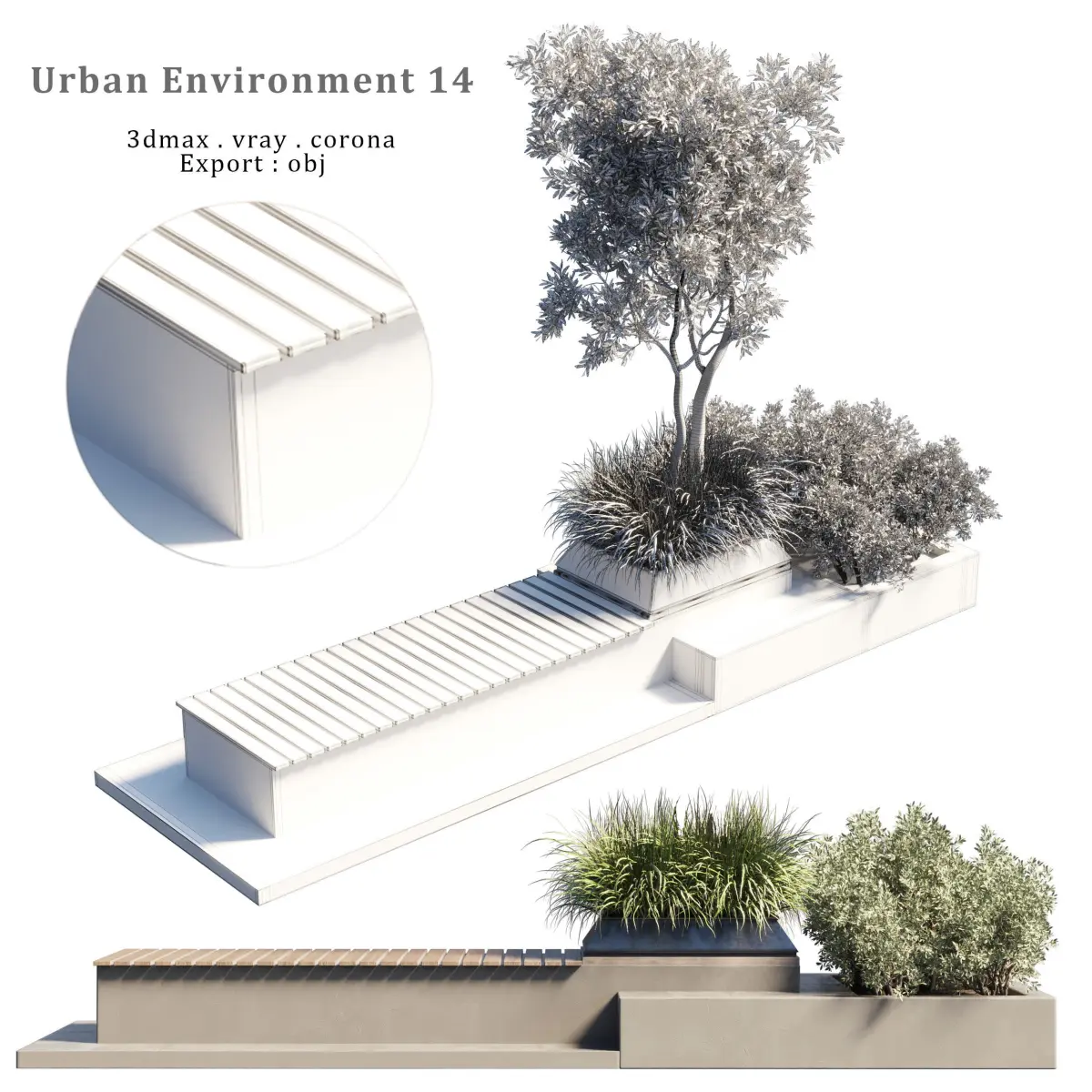 Urban-Environment_Urban-Furniture_Green-Benches_Plants-tree-grass-bush