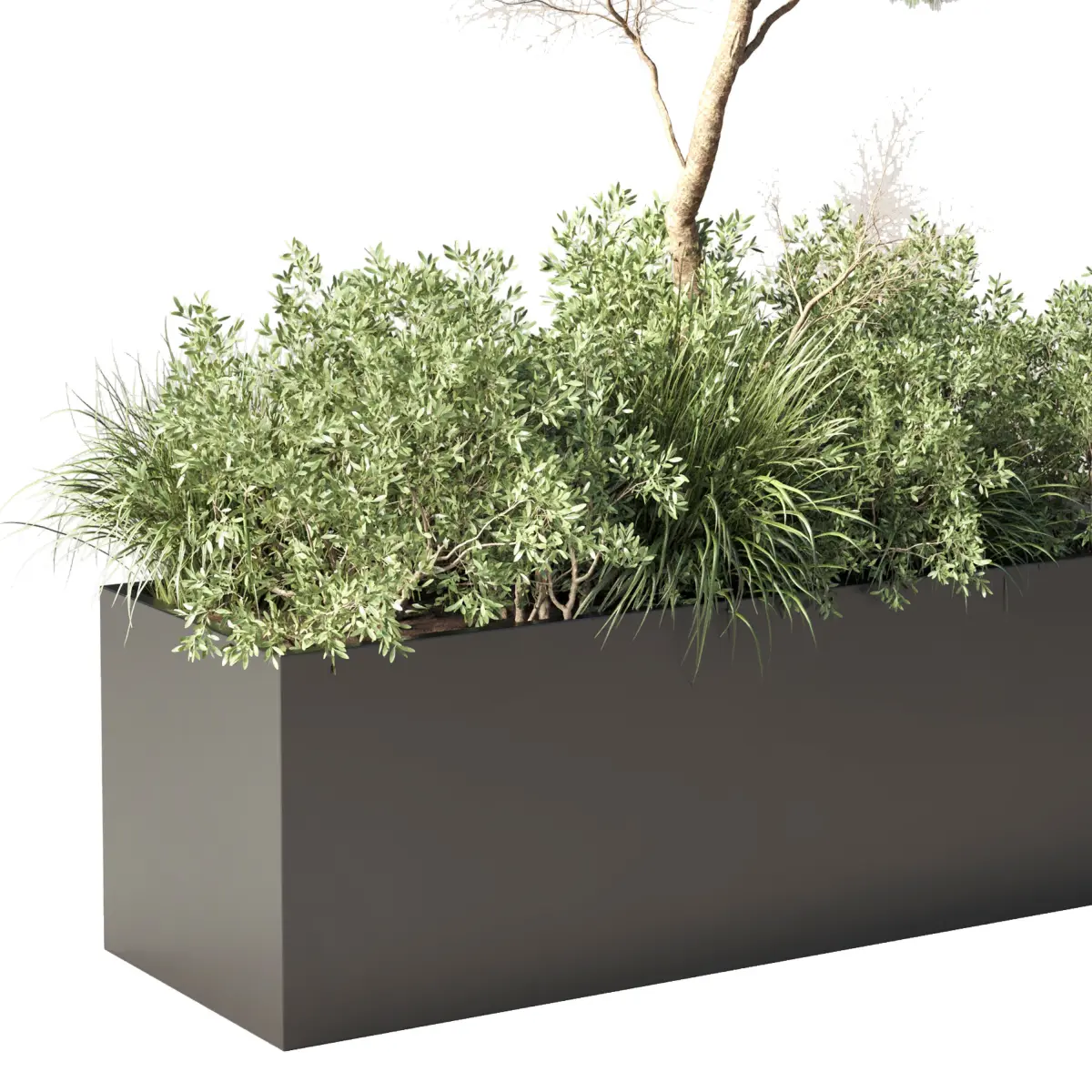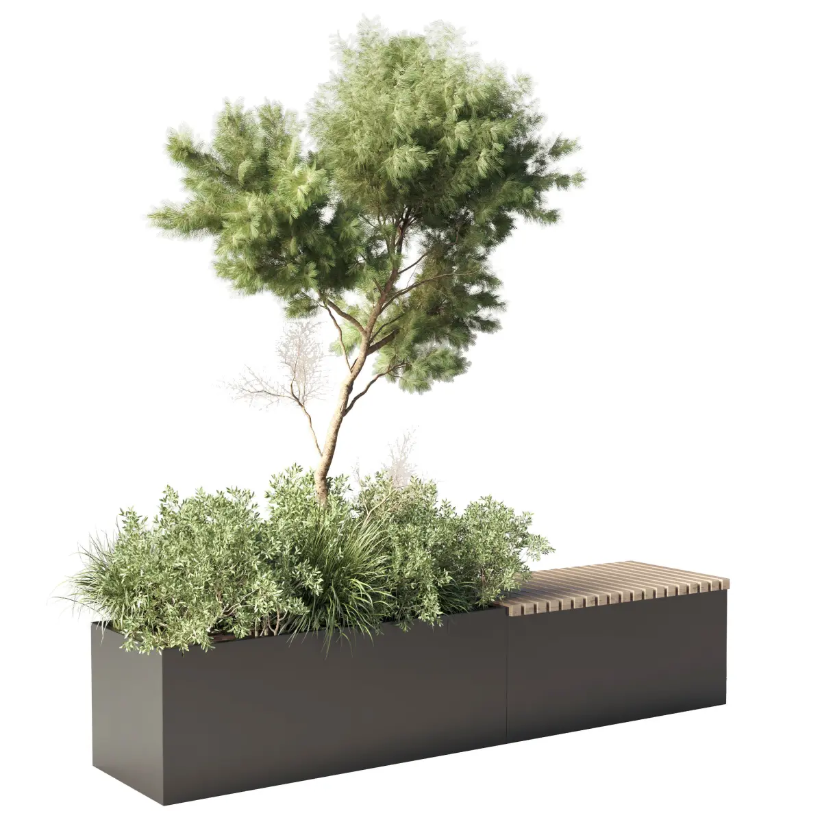 Urban Environment_Urban Furniture_Green Benches_ Tree pine bush grass 21